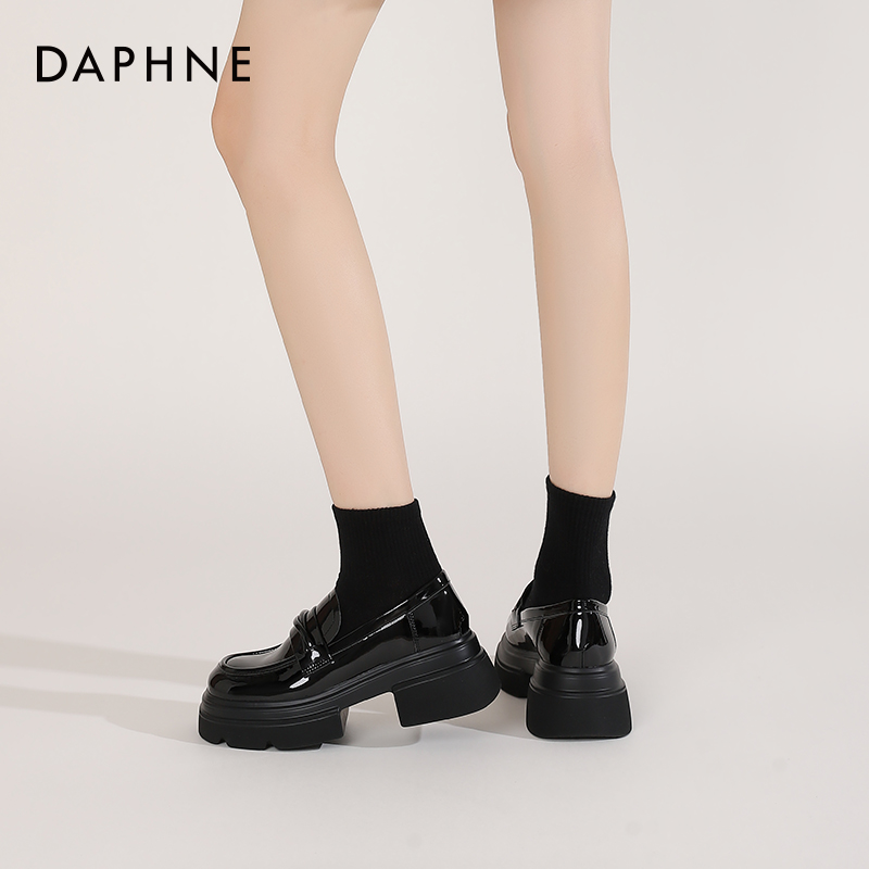 女2025新款 一脚蹬单鞋 秋季 英伦风女鞋 黑色小皮鞋 达芙妮厚底乐福鞋