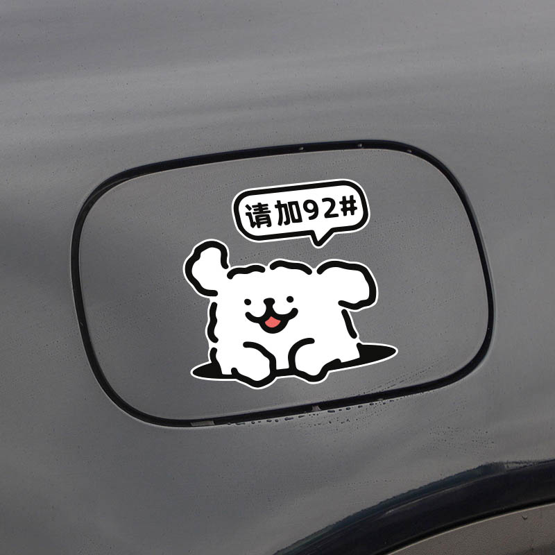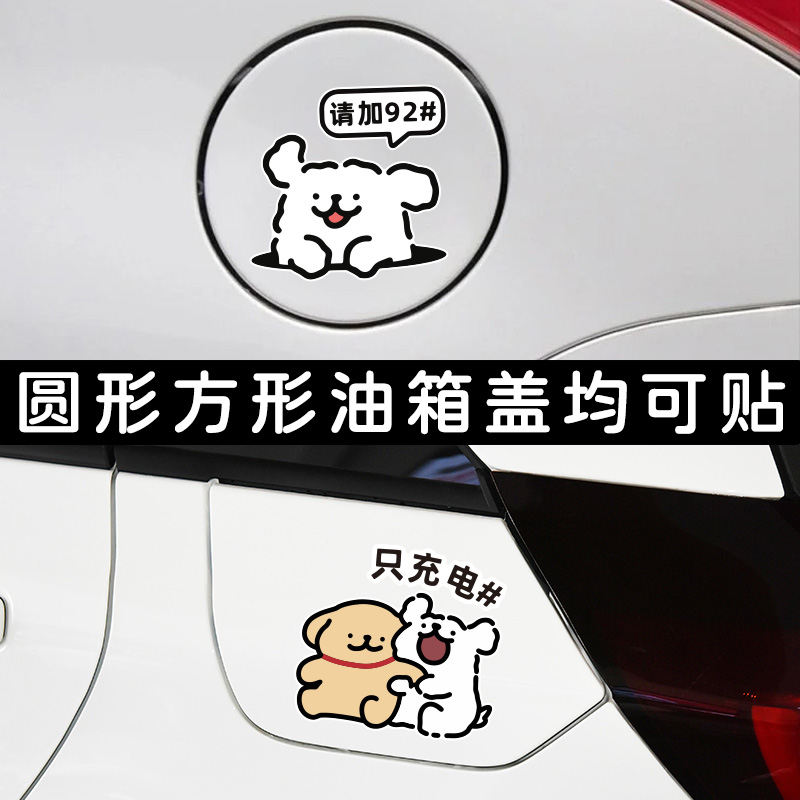 新能源汽车充电口油箱盖油号提示车贴线条小狗加油号9295装 饰贴纸