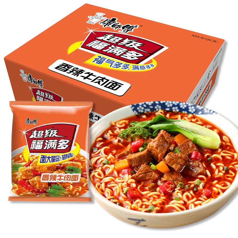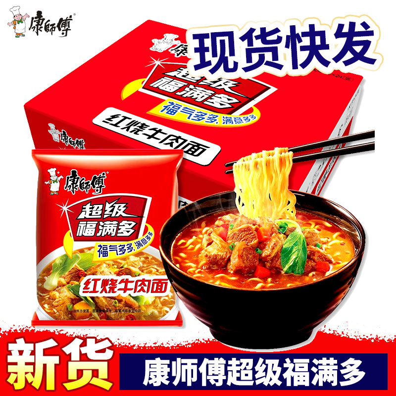 康师傅超级福满多红烧牛肉方便面上汤排骨泡面 12包送电煮锅