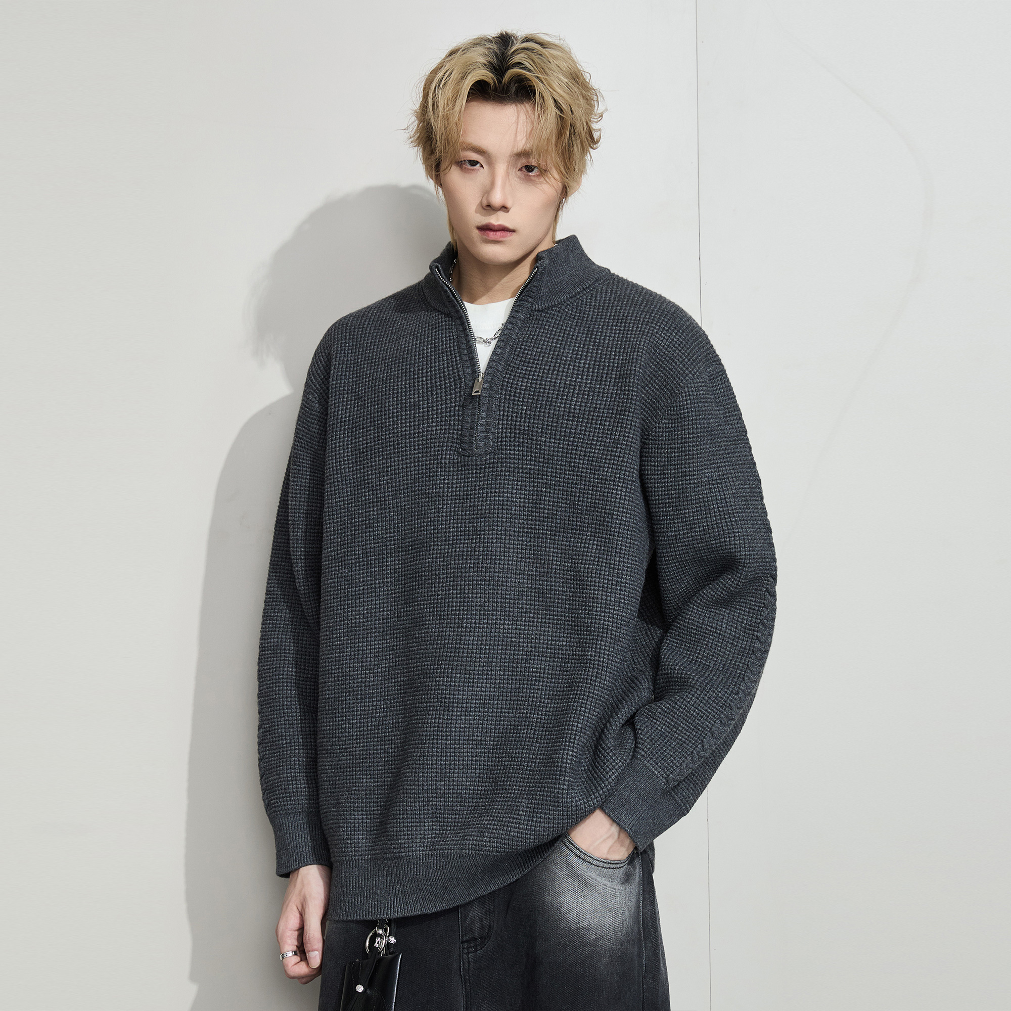 江南先生NewJNXS美式 外套 v领套头圈圈纱毛衣男女秋慵懒宽松针织衫