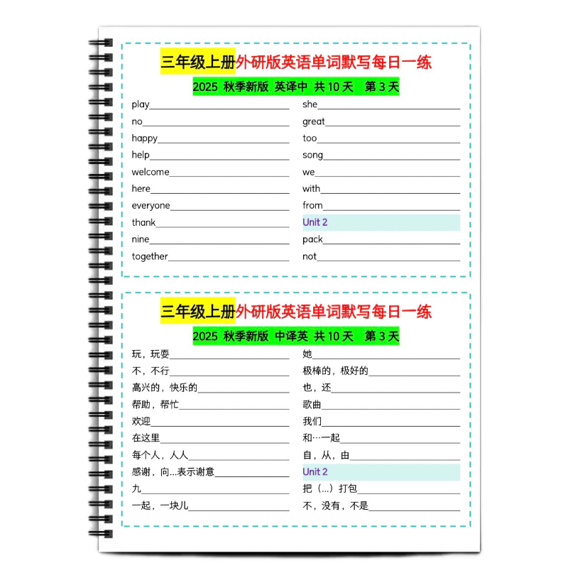 2025秋外研版 小学英语三年级上册英语单词默写每日一练单词英汉互译默写小纸条专项练习