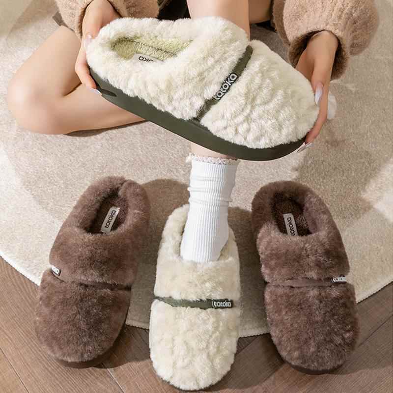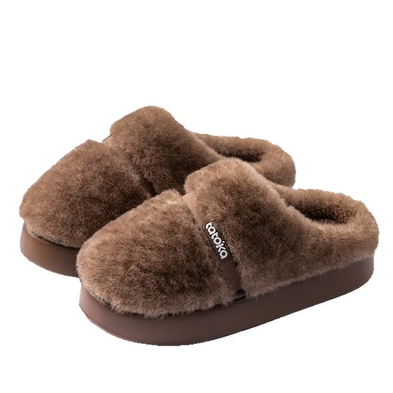 毛毛棉拖鞋 室内厚底防滑办公室居家用时尚 男包根 女士秋冬季 棉拖鞋