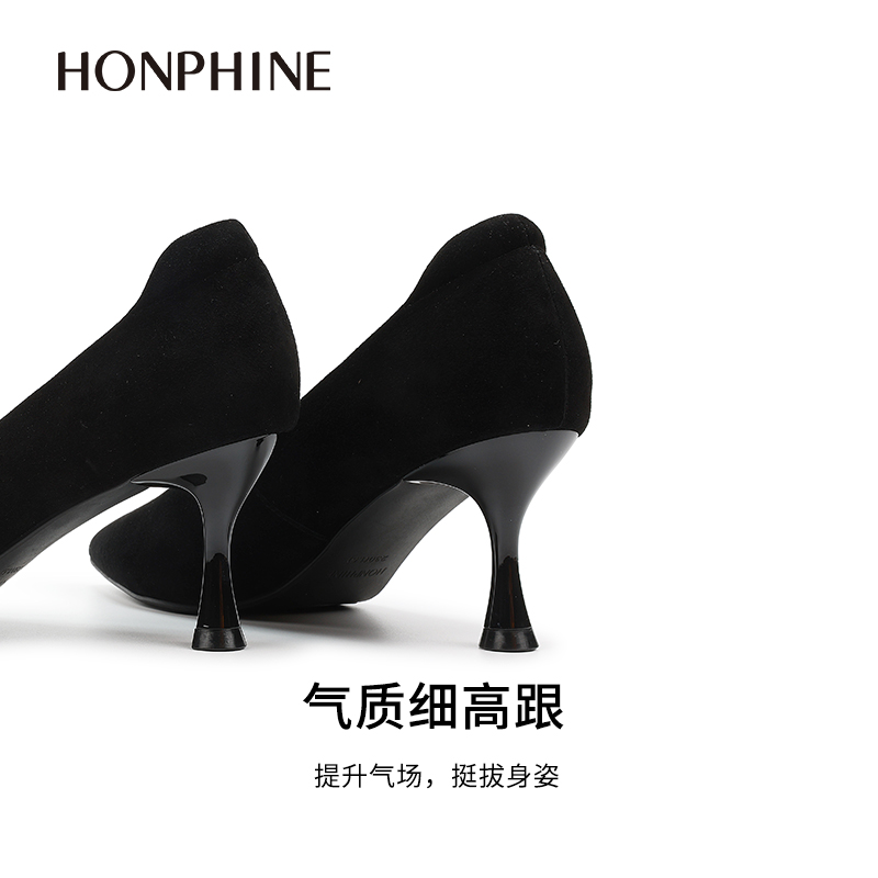 黑色单鞋 女细跟百搭职业工作鞋 真皮尖头高跟鞋 红粉知已2025秋新款