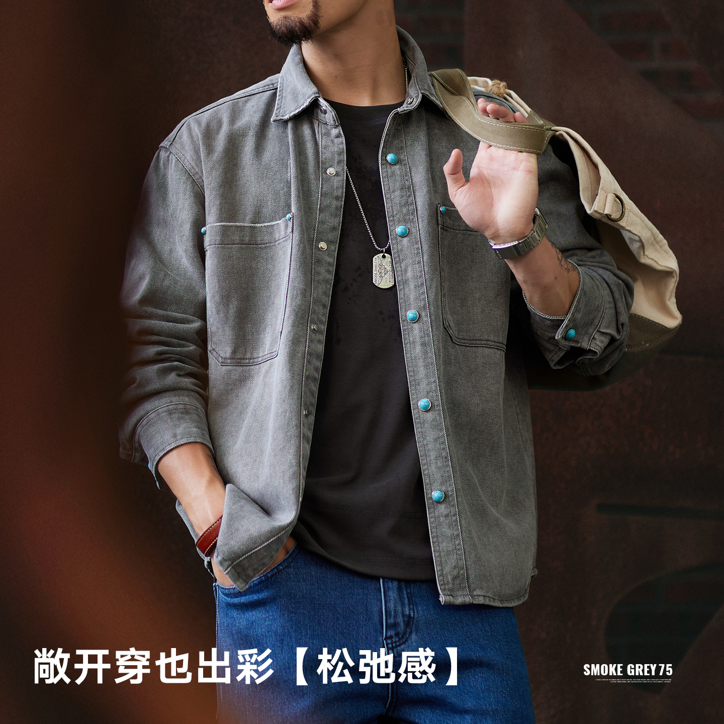 外套男长袖 复古水洗工装 秋季 美式 衬衣潮 2025新款 宇透纯棉牛仔衬衫