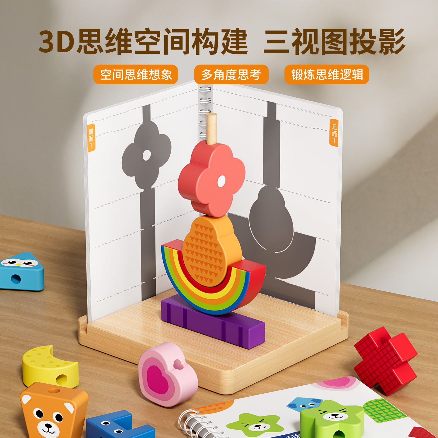 早教益智立体空间思维训练玩具木质3D构建拼装 积木婴幼儿童0到3岁