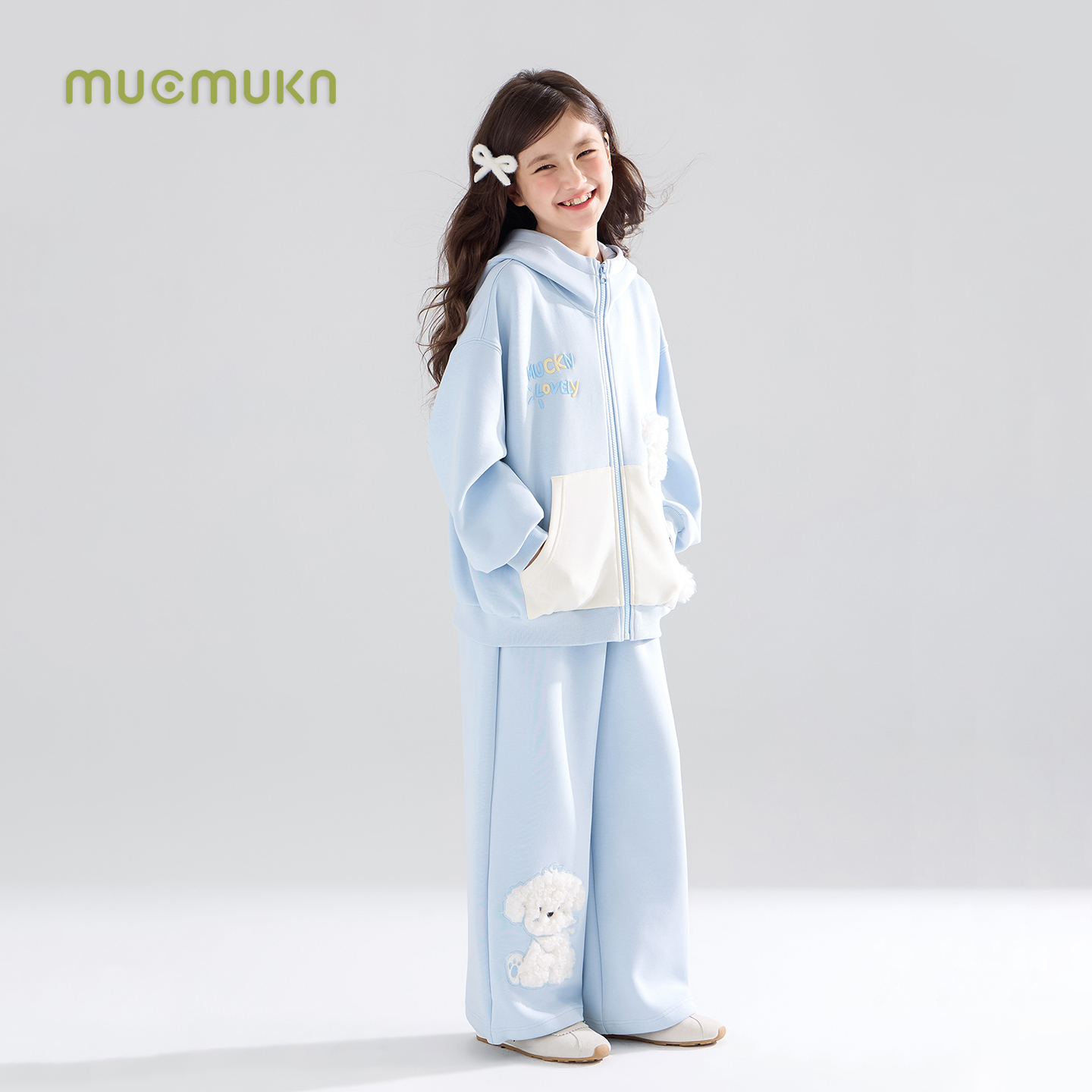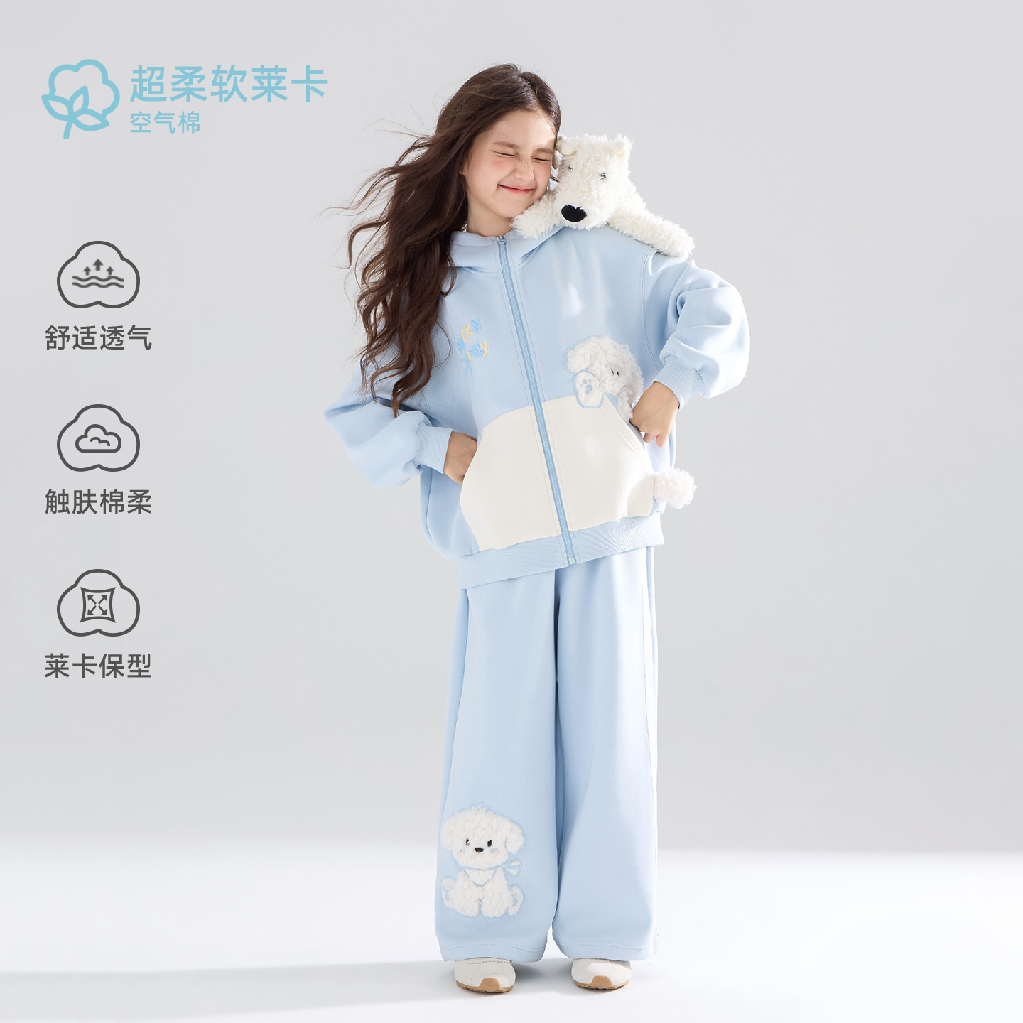 小狗绣花卫衣卫裤 超柔软莱卡空气棉套装 女童秋新 棉花糖小狗