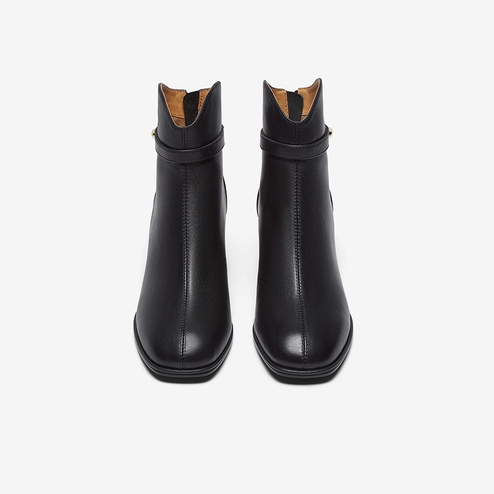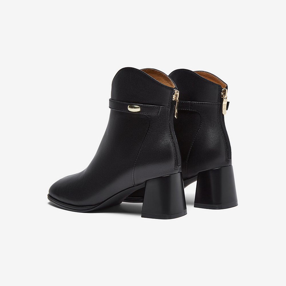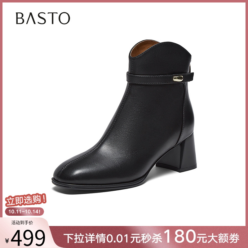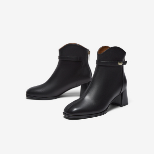 小踝靴女短靴C5991DD5 气质粗跟羊皮靴法式 百思图2025冬季 商场新款