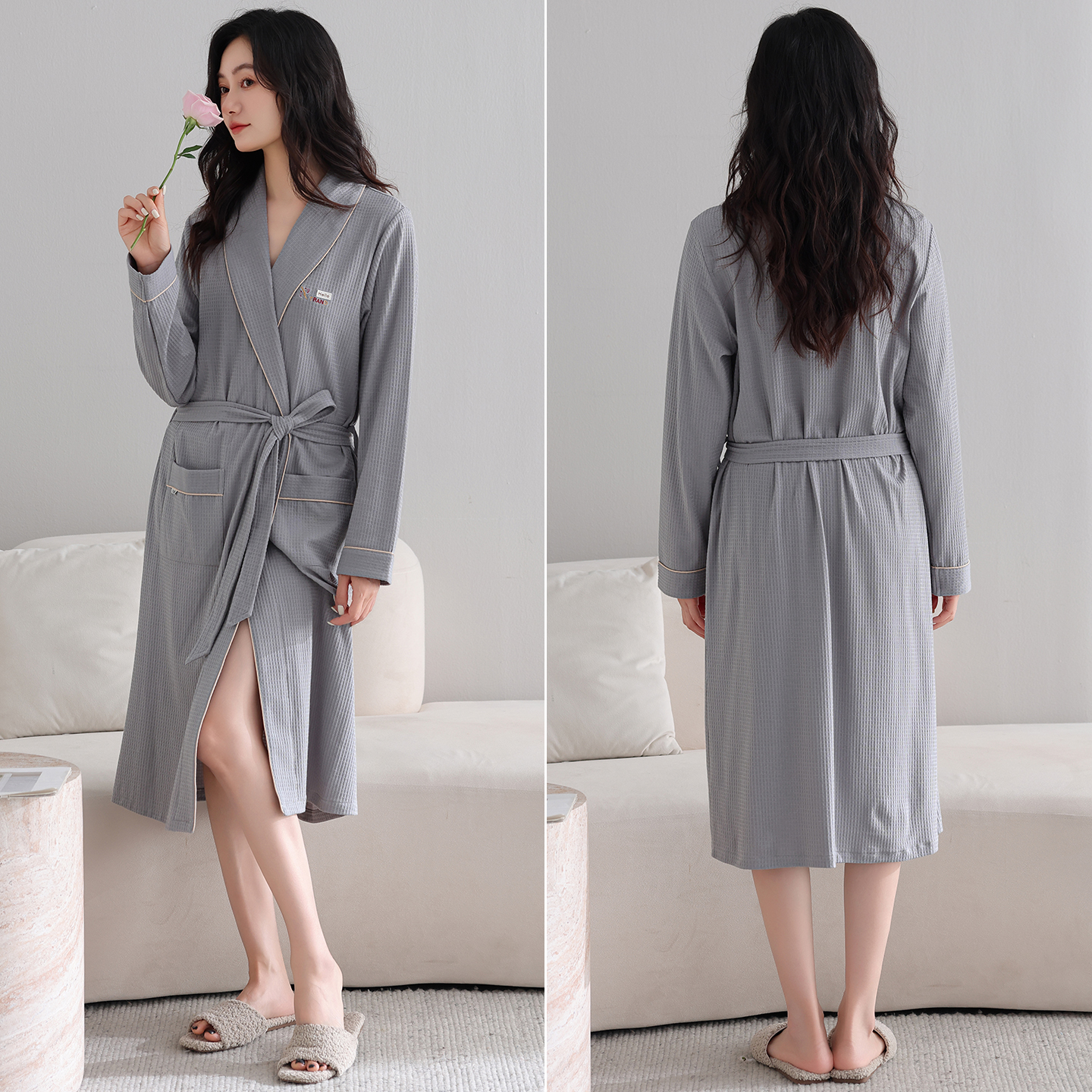 浴衣大码 睡袍浴袍女春秋季 2025新款 纯棉华夫格睡衣长袖 家居服 秋款