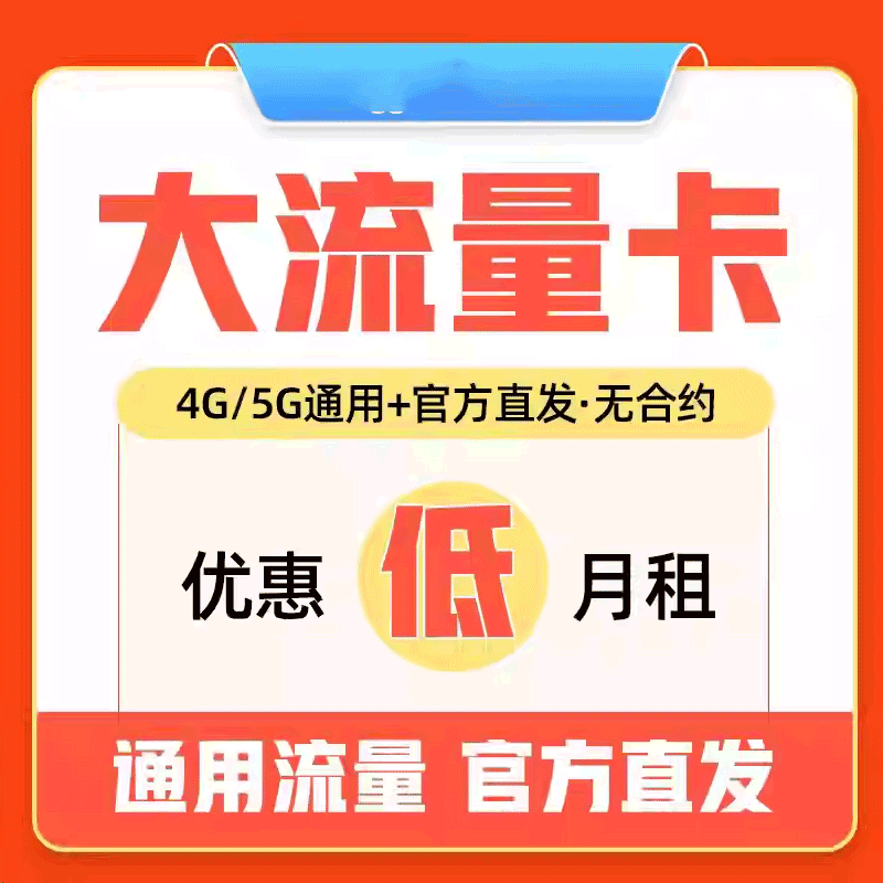 中国移动流量卡纯流量上网卡手机电话卡5g大流量卡无线量全国通用