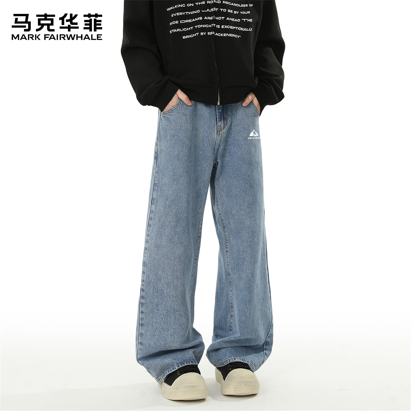 男士 休闲长裤 秋冬季 子男款 宽松直筒加厚保暖阔腿裤 罗蒙加绒牛仔裤