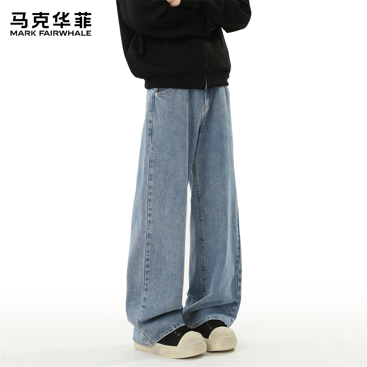 宽松阔腿裤 弯刀牛仔裤 复古美式 春秋垂感高腰直筒大码 子 女2025新款