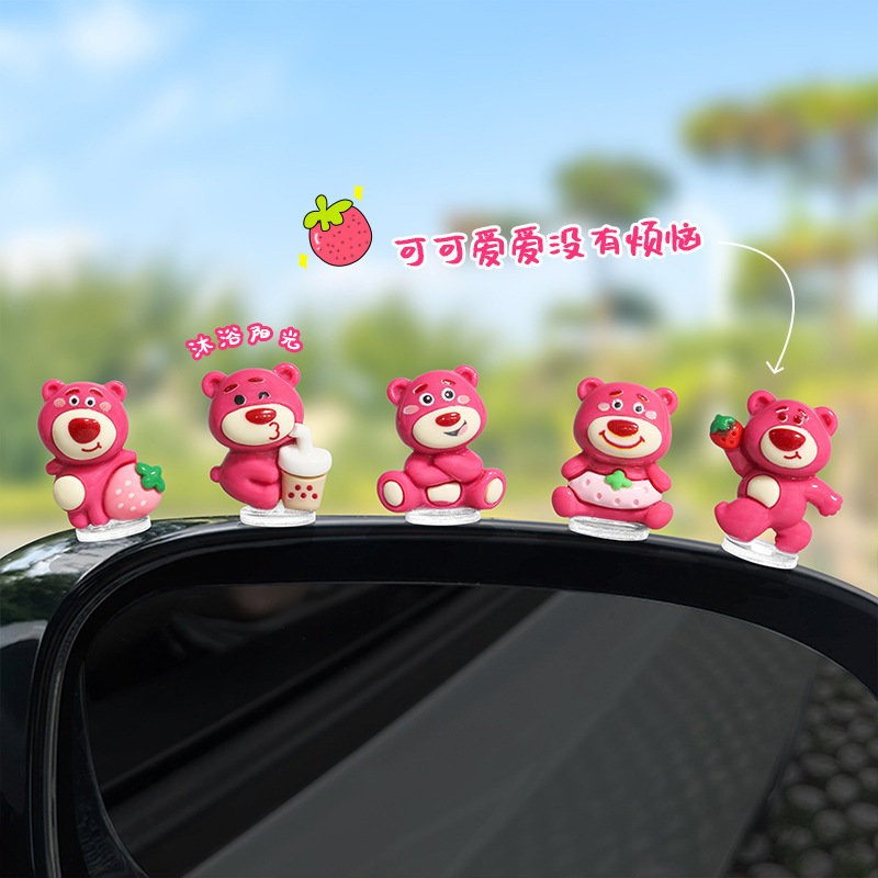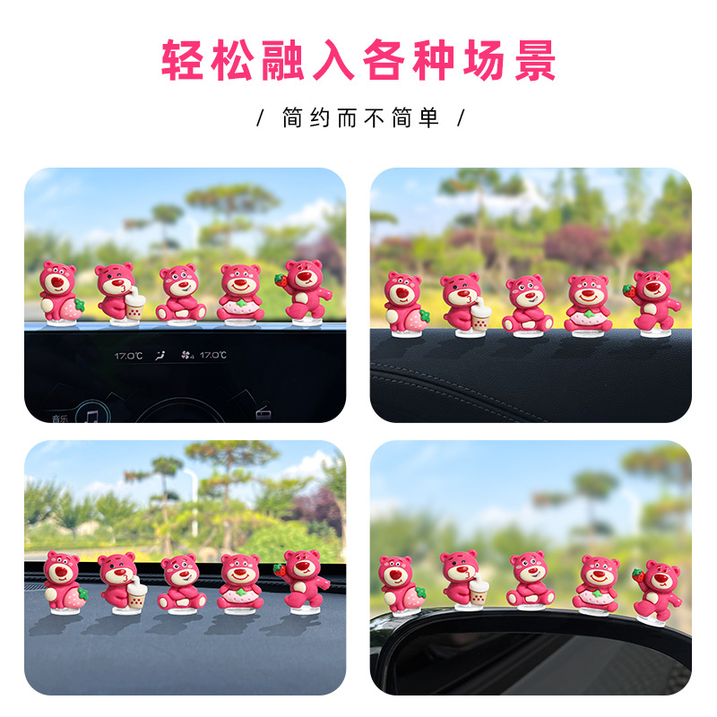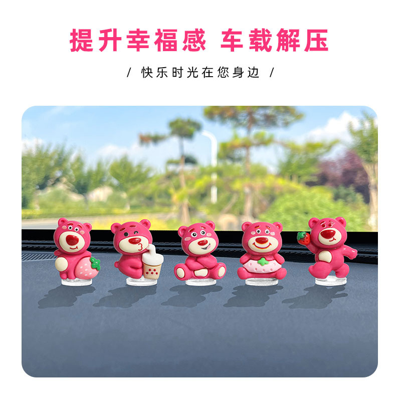 卡通草莓小熊汽车摆件女生电车可爱车载中控台导航屏幕饰品小摆件