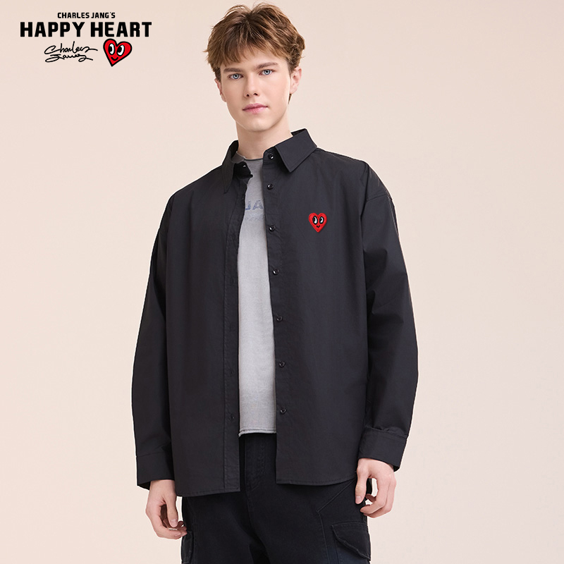 衬衫 翻领白色长袖 外套运动潮流百搭情侣休闲 男女款 查尔斯桃心秋季