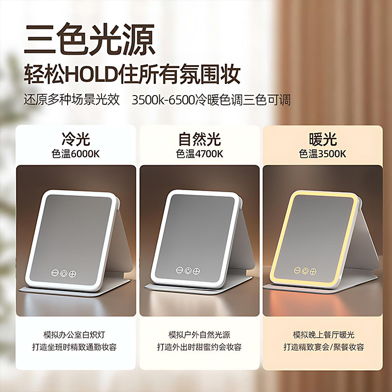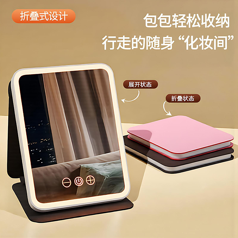 led化妆镜带灯折叠梳妆台智能高清台式 便携随身学生宿舍桌面镜子