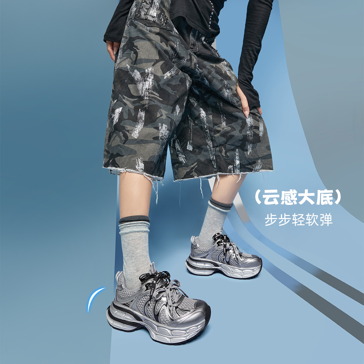 贝果鞋 骆驼慢跑鞋 透气银灰色复古休闲鞋 透气老爹鞋 子 漫游女运动鞋