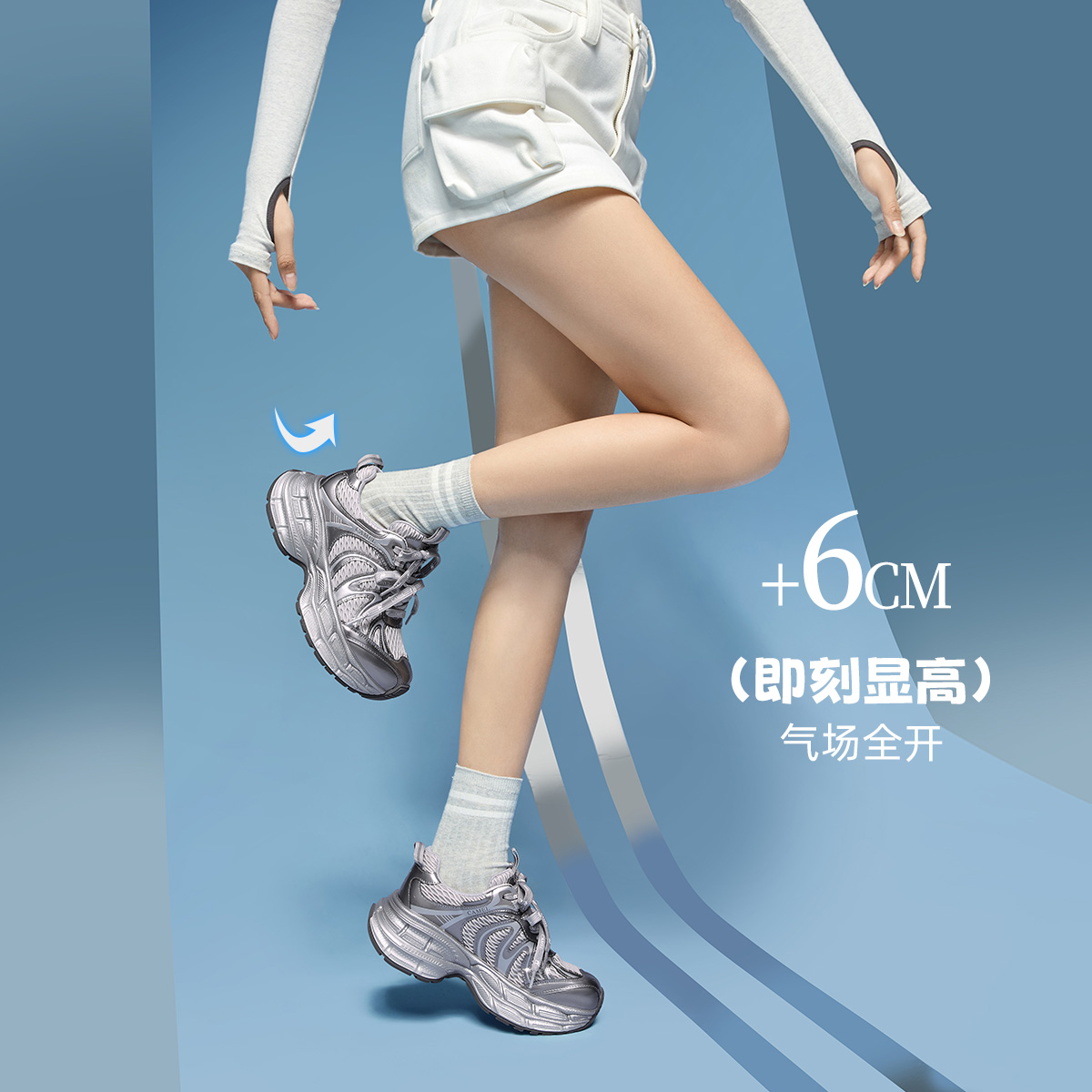 2025新款 银色老爹鞋 秋女鞋 厚底增高休闲鞋 银色运动鞋 斯凯奇熊猫鞋