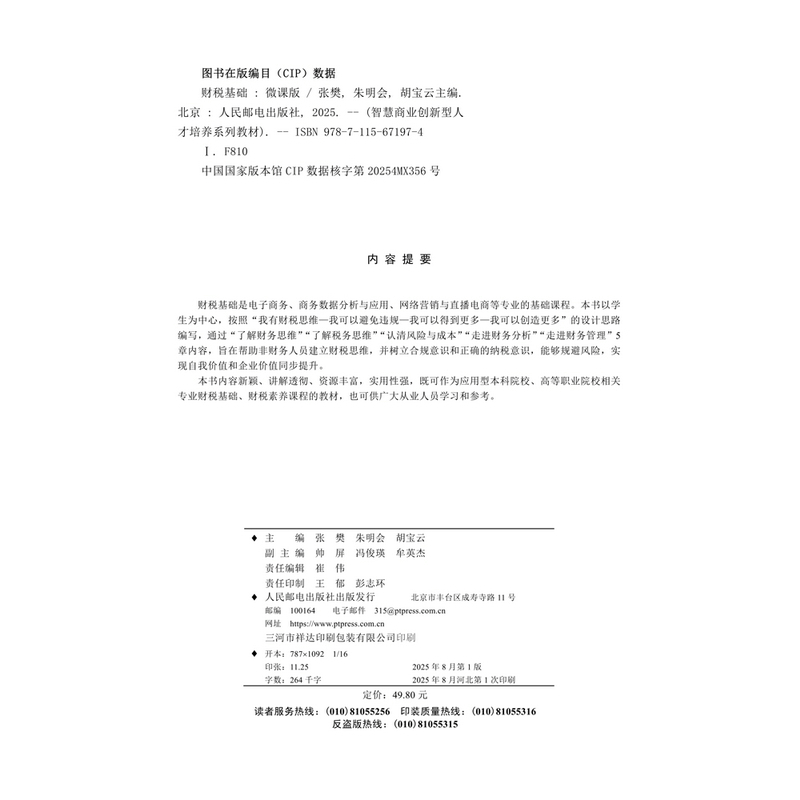 微课版 社新华书店正版 智慧商业创新型人才培养系列教材张樊 胡宝云大学教材人民邮电出版 朱明会 财税基础