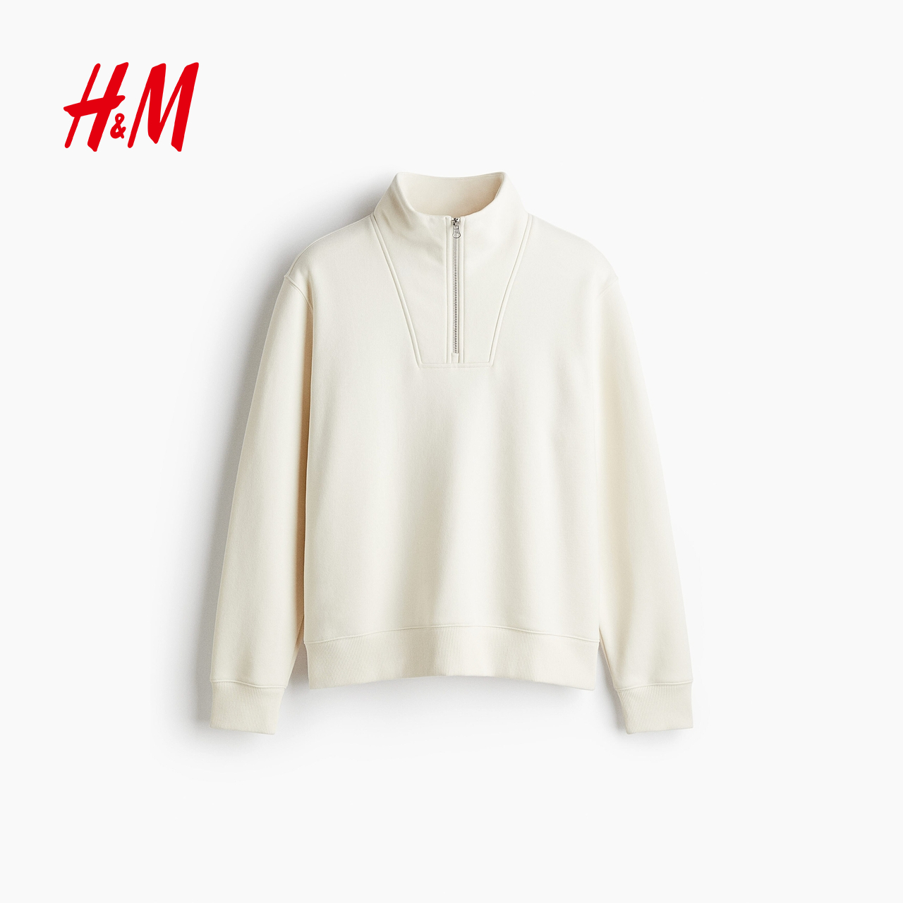 半拉链高翻领加绒重磅套头衫 HM男装 新款 卫衣2025秋季 1241739 女装