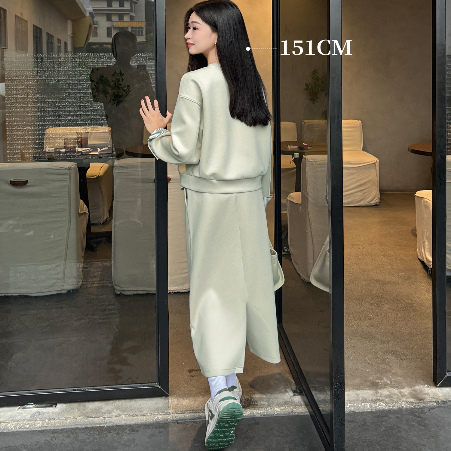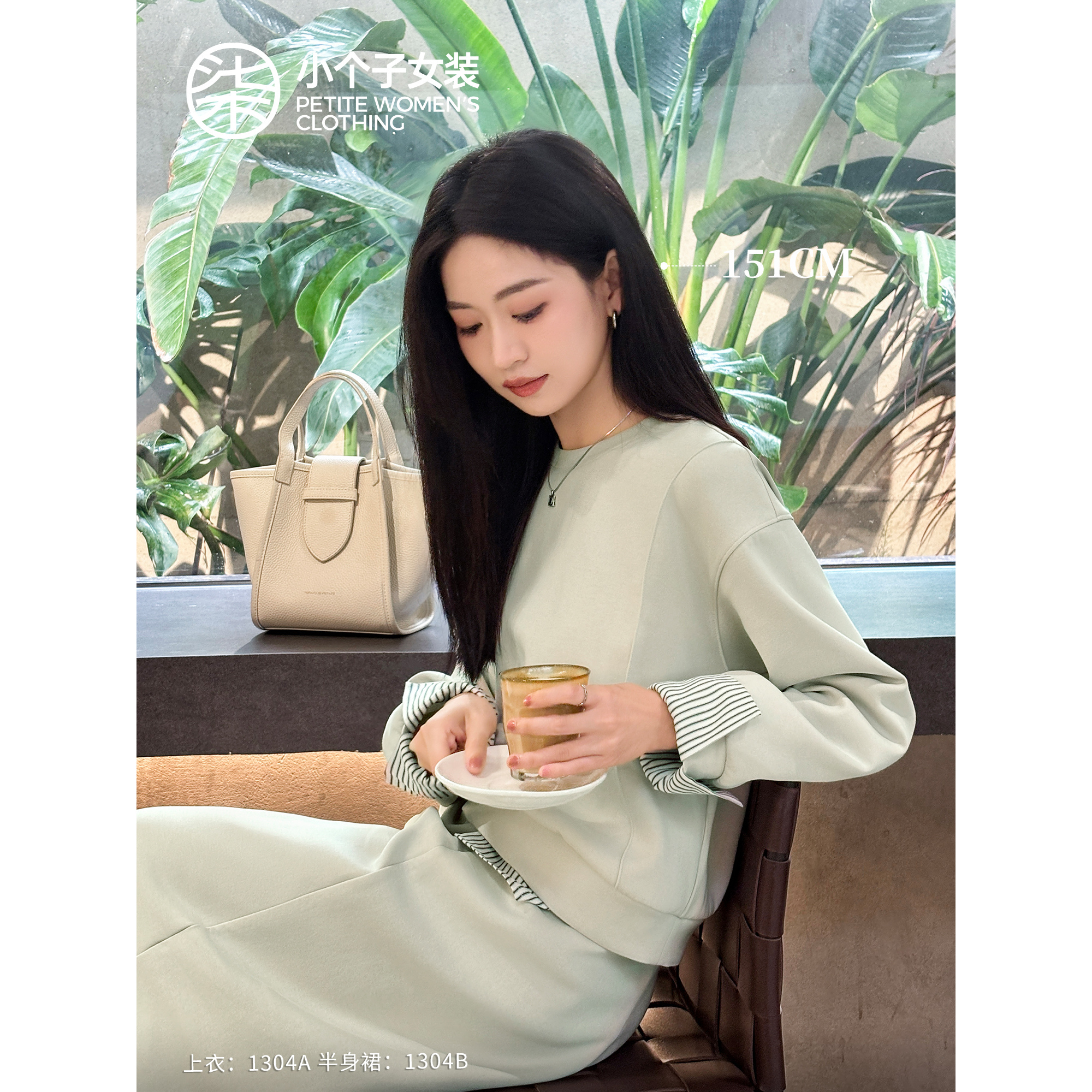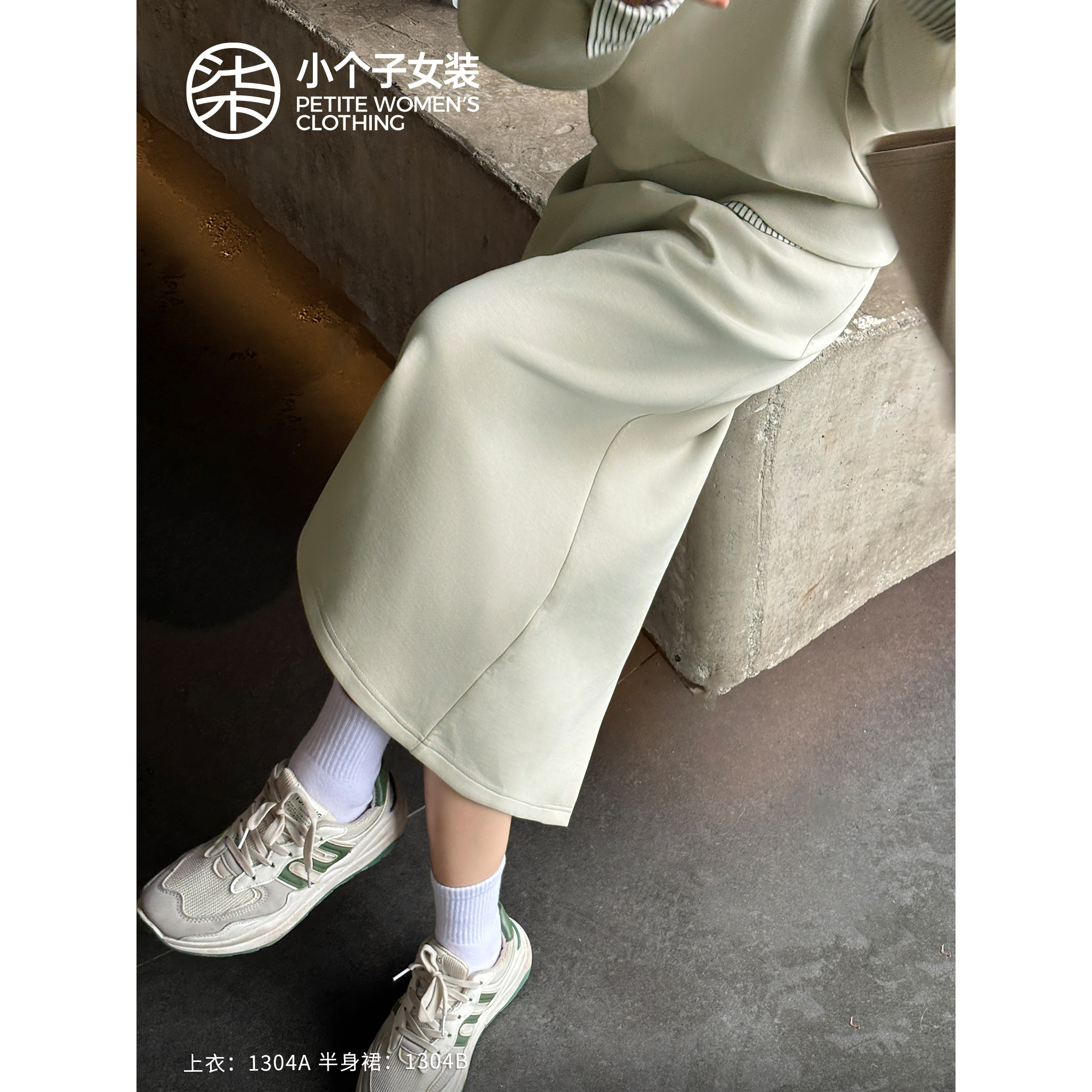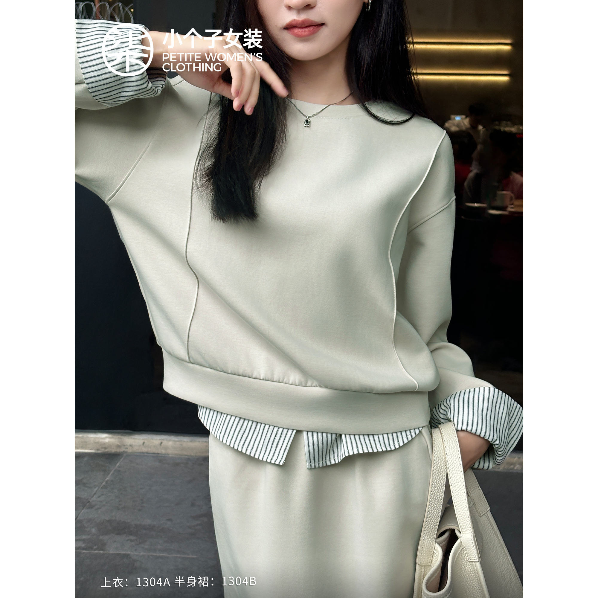 柒量一裁小个子秋装 1304 浅绿卫衣两件套女慵懒休闲半身长裙套装