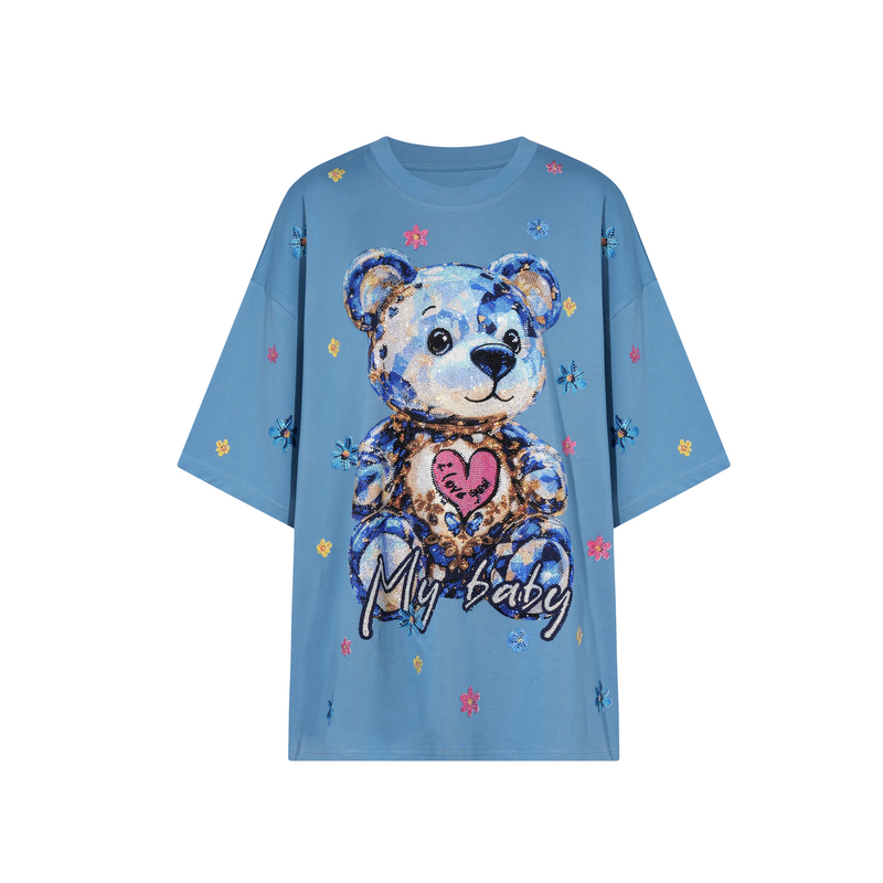 TCH轻奢潮牌卡通烫钻休闲宽松百搭短袖 T恤女萌宠系列T75C10E9057
