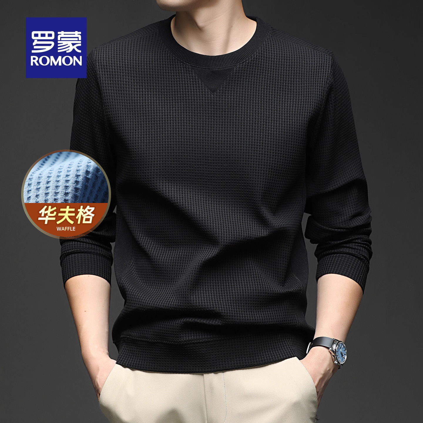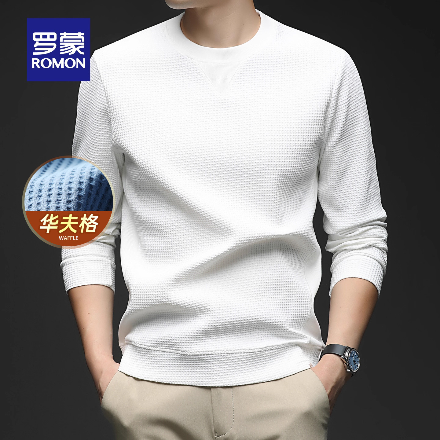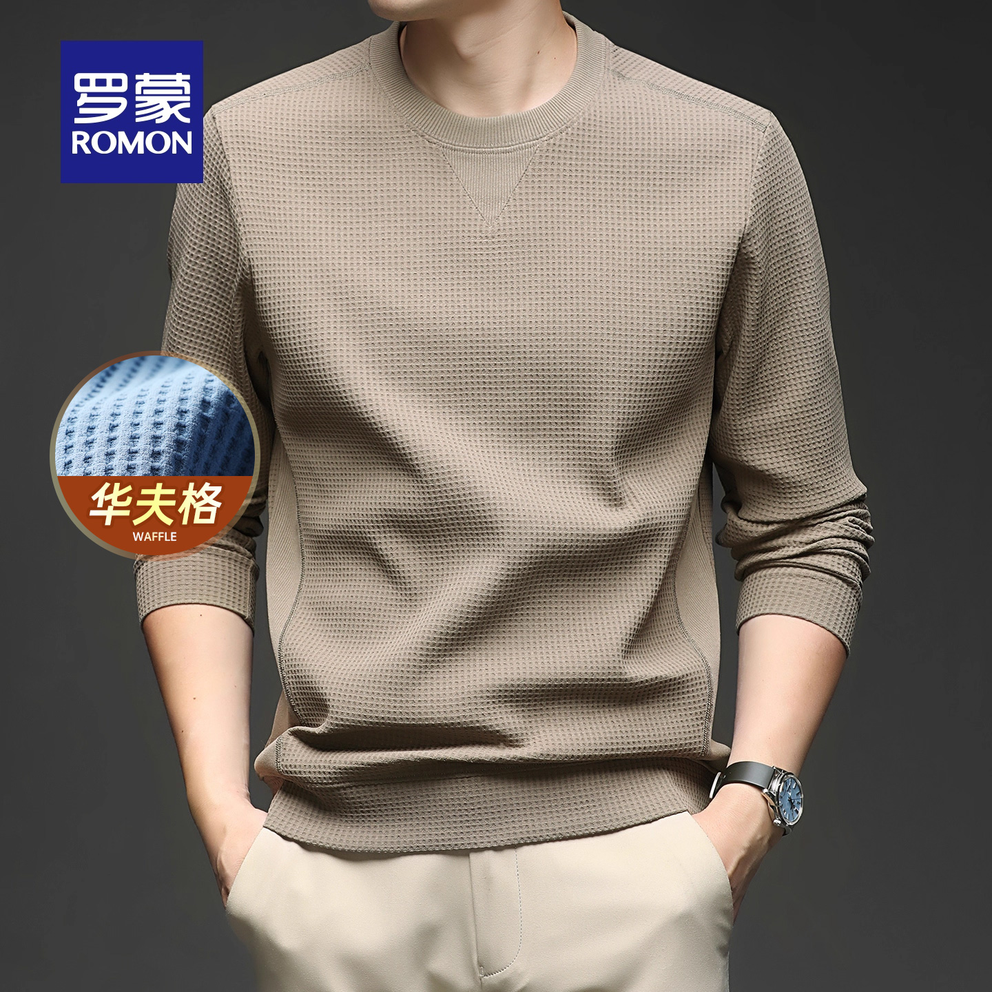 华夫格 新款 罗蒙男士 T恤2025秋季 百搭上衣休闲圆领打底衫 长袖