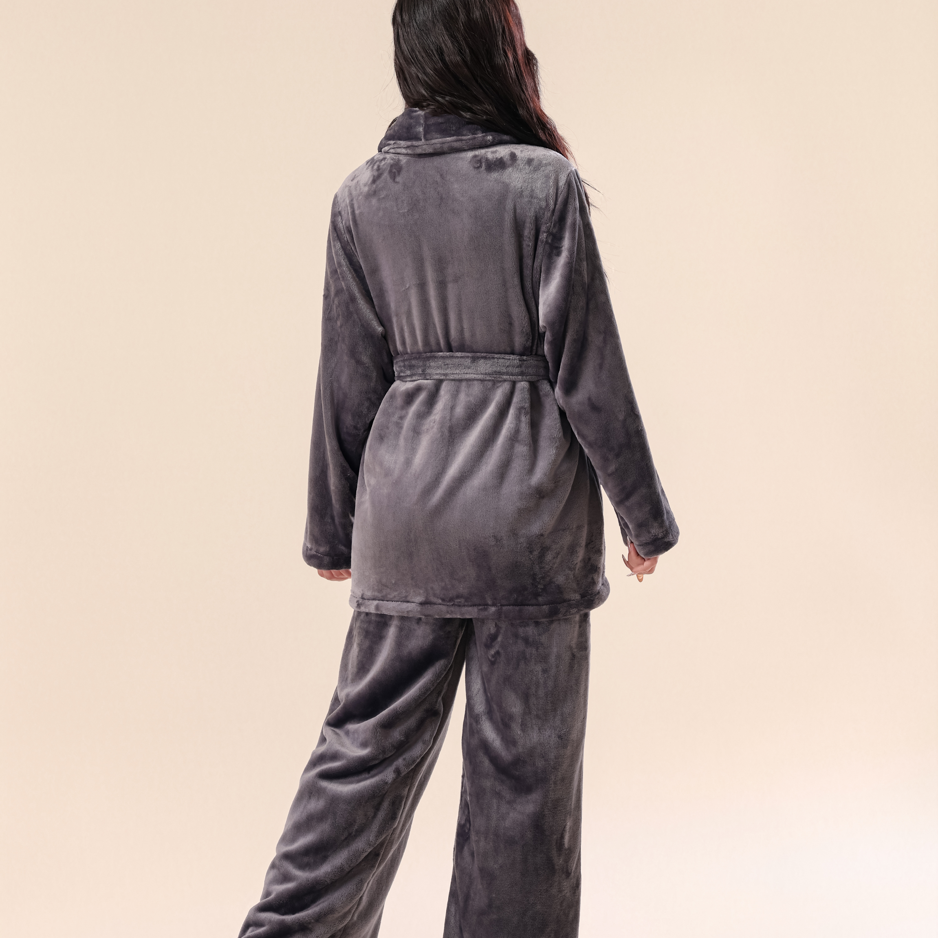 拉链珊瑚绒加绒可外穿情侣家居服女套装 睡衣秋冬男款 双层加厚
