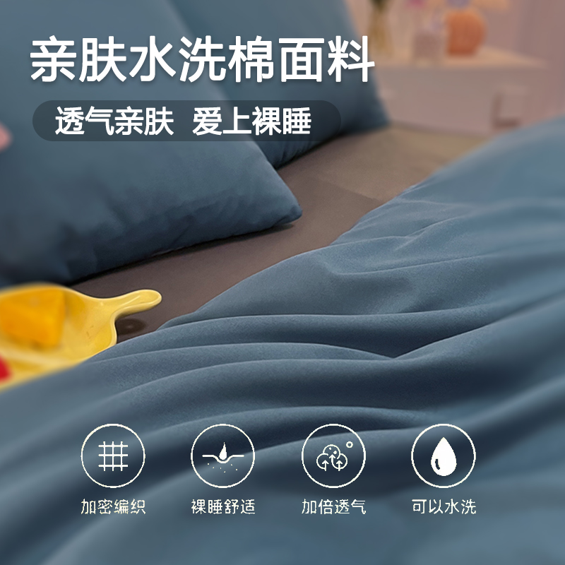 水洗棉被套单件150x200x230cm非全棉纯棉被罩学生宿舍单人三件套