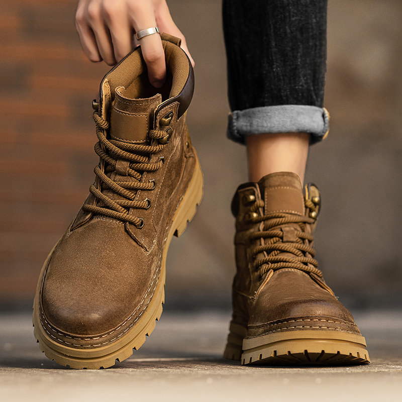 靴 户外登山运动轻便工装 马丁靴男秋冬高帮英伦风复古男士 休闲皮鞋