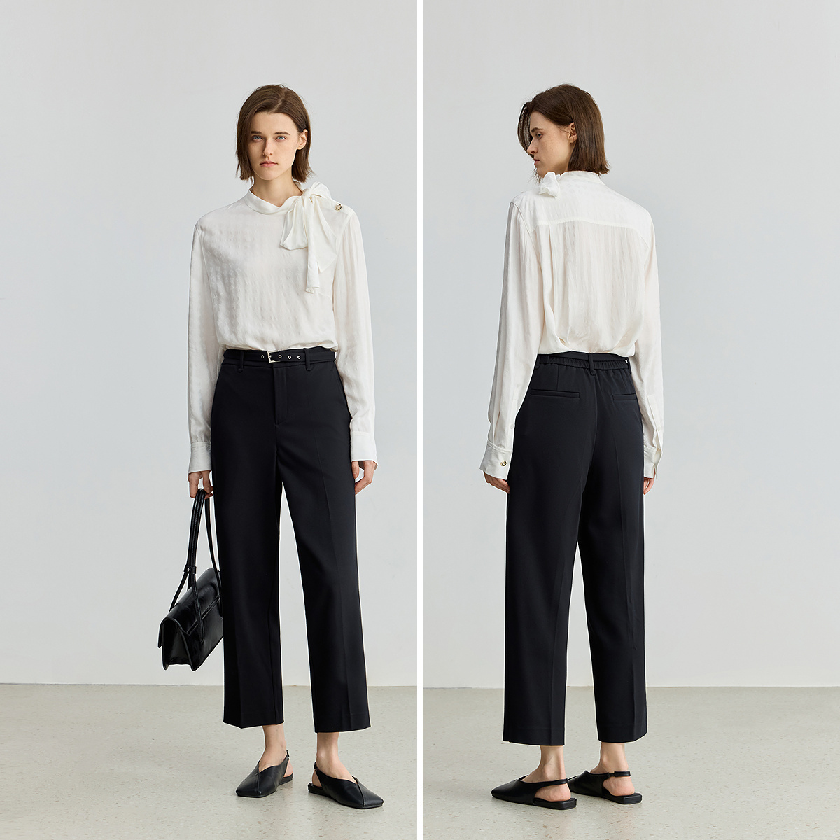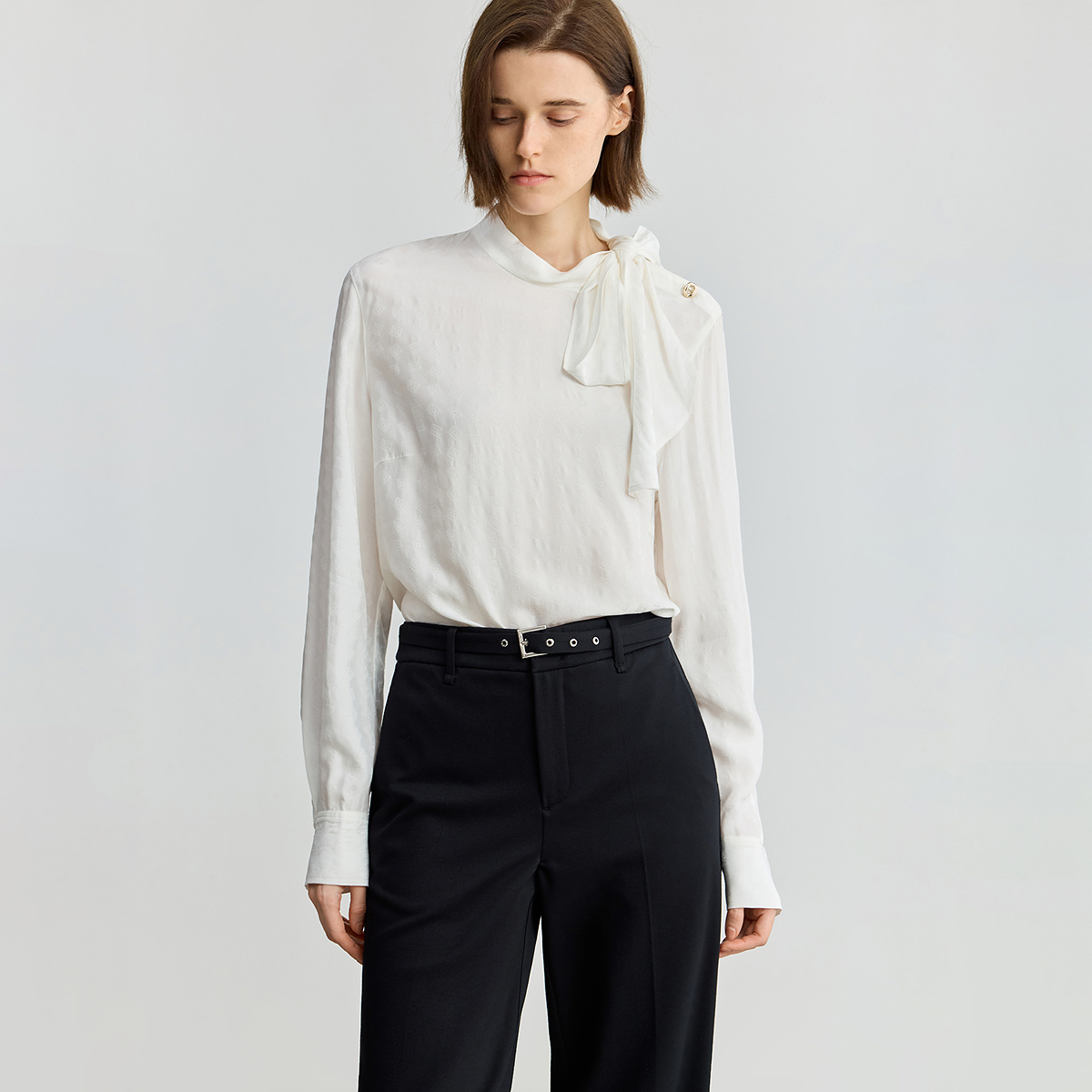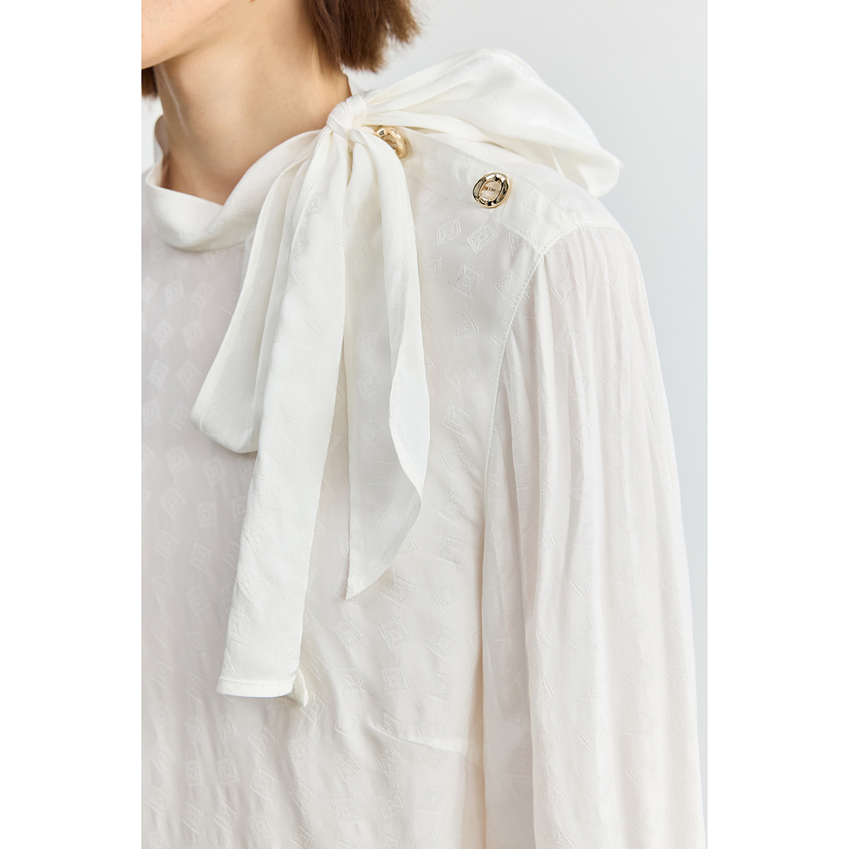 提花飘带领通勤白色套头衫 法式 LILY2025秋新款 女小衫 商场同款