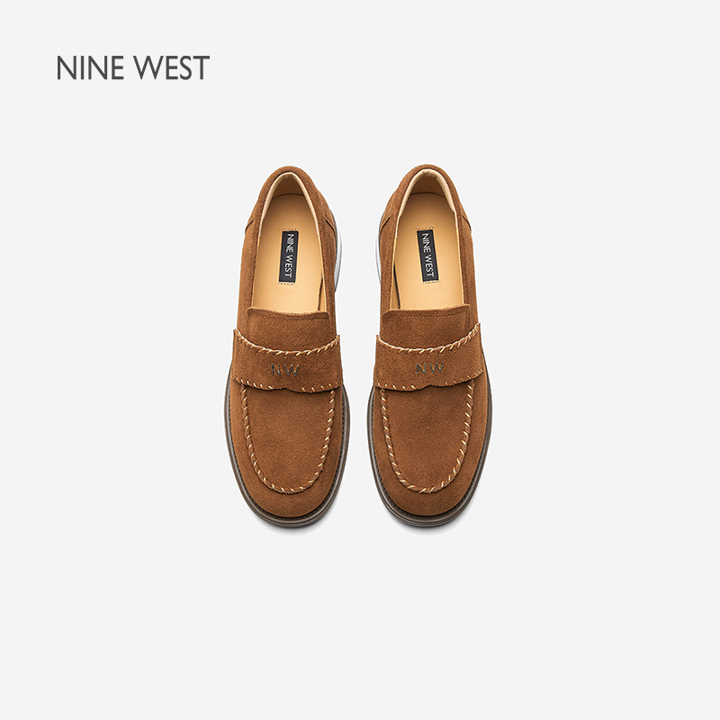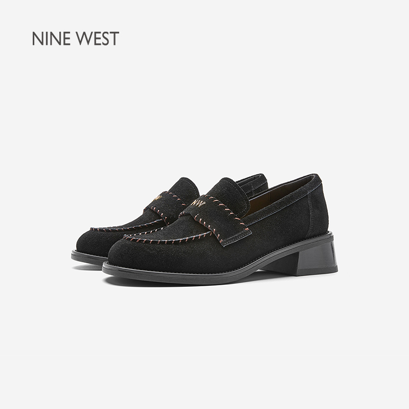 West 百搭女鞋 玖熙2025秋新款 牛反绒面一脚蹬单鞋 圆头乐福鞋 Nine