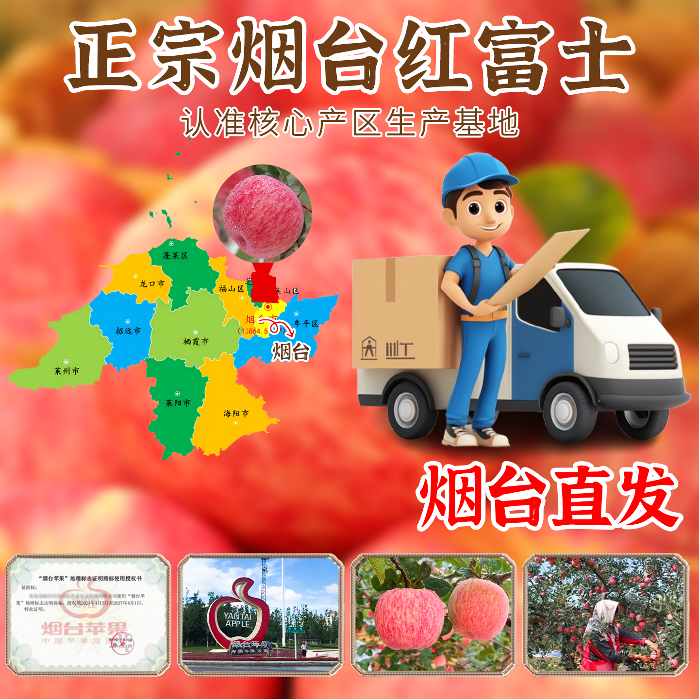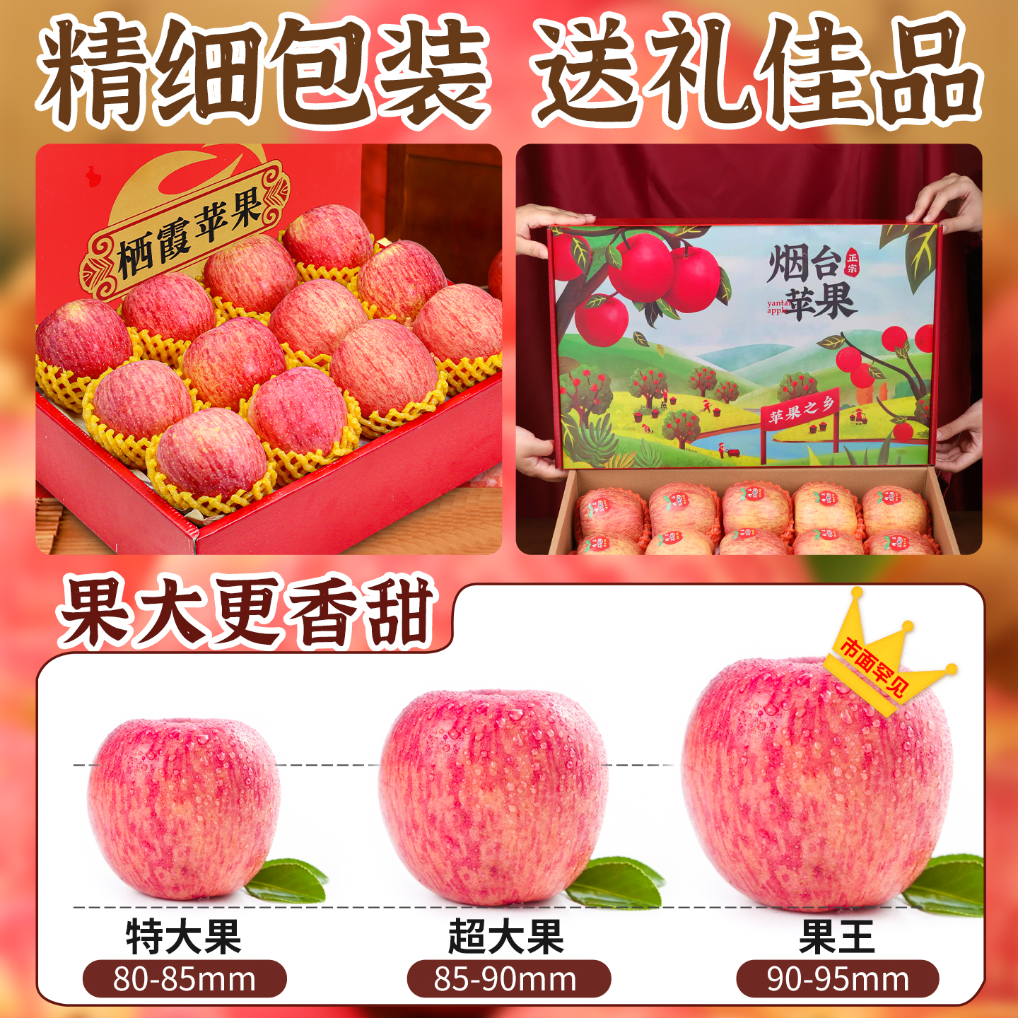 包邮 正宗山东烟台红富士苹果新鲜水果9斤当季 整箱栖霞脆甜苹果