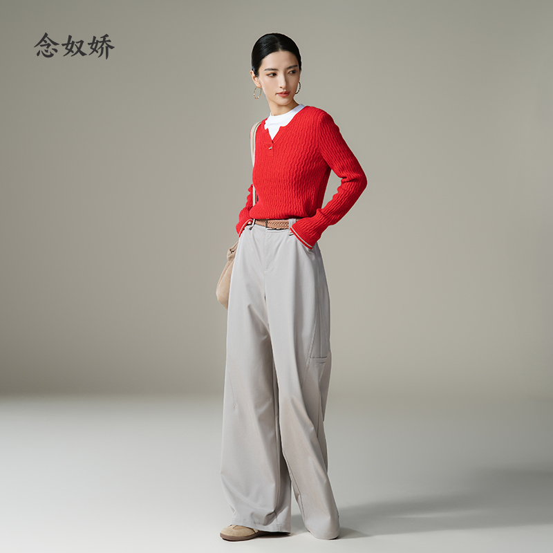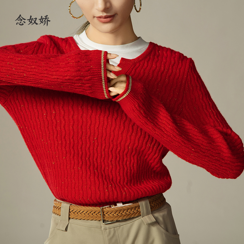 念奴娇商场同款 女正红色氛围羊毛毛衣CNK4982 2025秋冬绞花针织衫