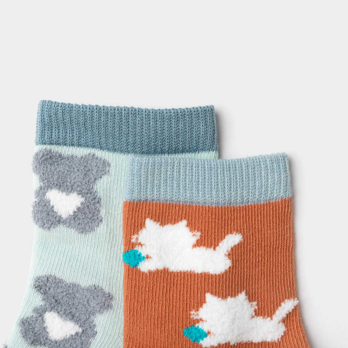 巴拉巴拉宝宝保暖袜子冬季 舒适半边绒萌趣卡通小童女童短袜两双装