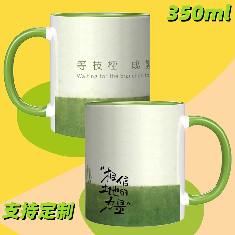 非人哉同款 马克杯无把咖啡杯带盖绿三角图案大士陶瓷杯大容量水杯