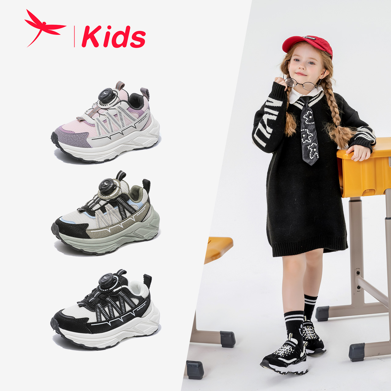 校园户外轻便透气休闲跑步老爹鞋 运动鞋 新款 红蜻蜓男女童春秋季