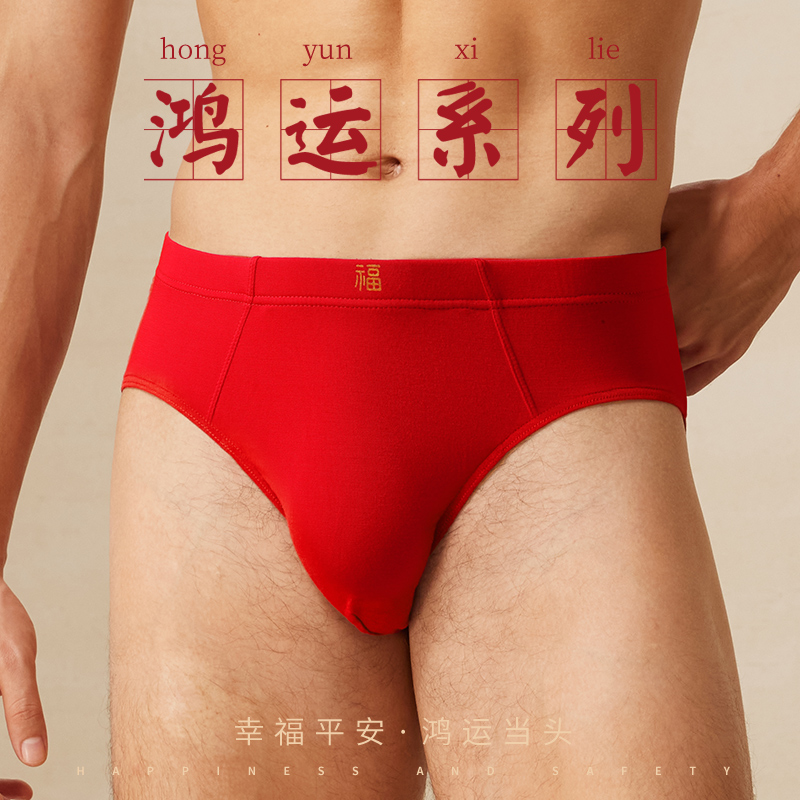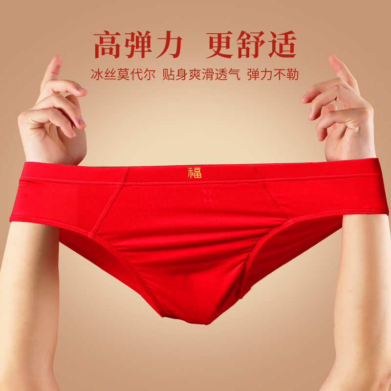 蛇年短裤 本命年结婚礼物莫代尔底裤 头 男士 七匹狼红色冰丝三角内裤