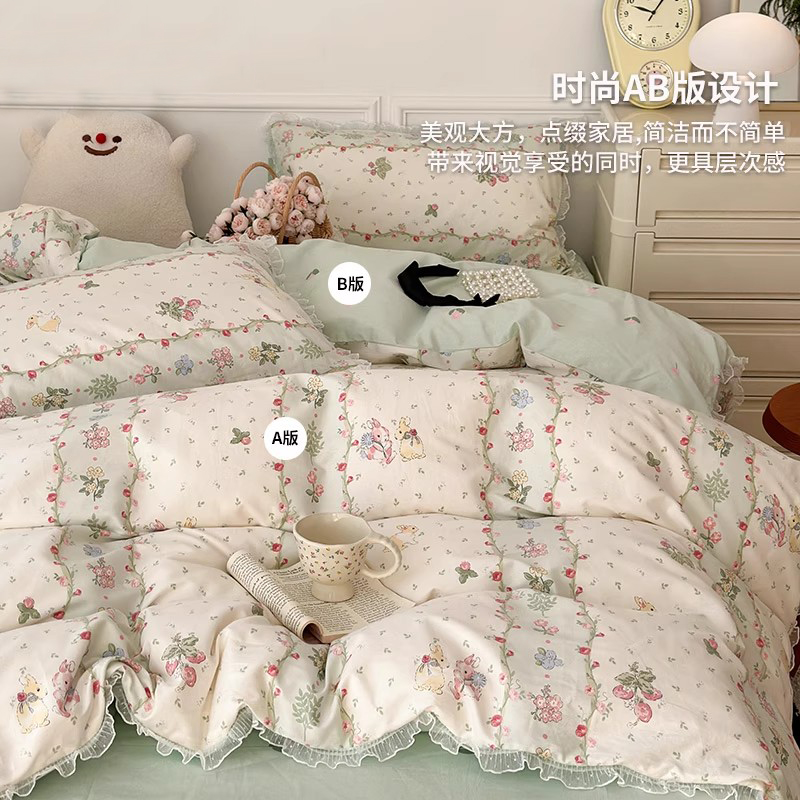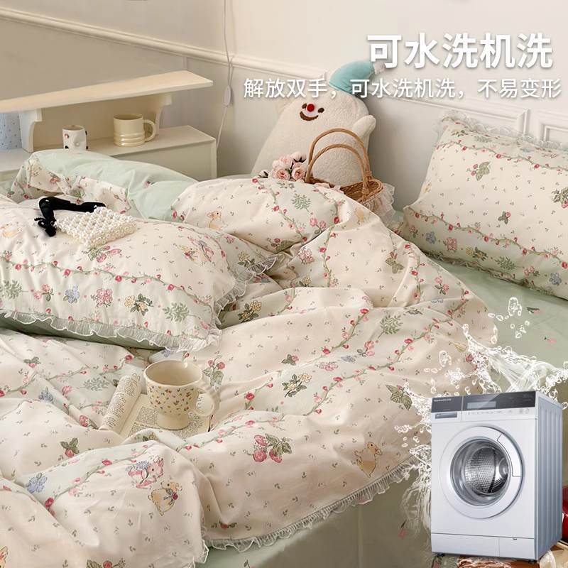 紫罗兰全棉仙仙雪纺纱花边四件套纯棉床单被套床上用品学生三件套