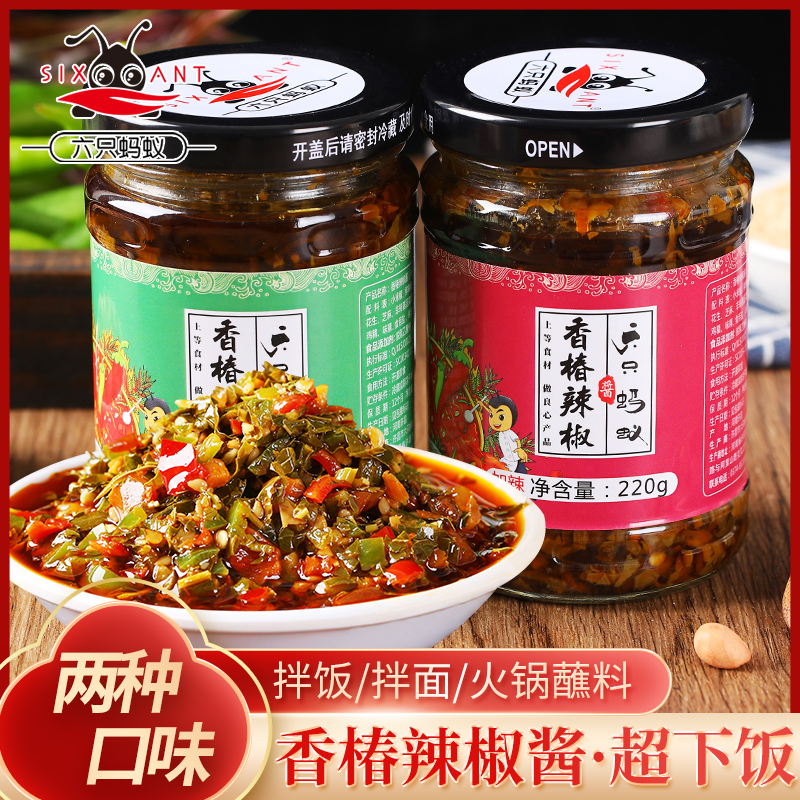 六只蚂蚁香椿酱特产油焖香春酱微辣加辣辣椒酱拌饭拌面下饭菜咸菜