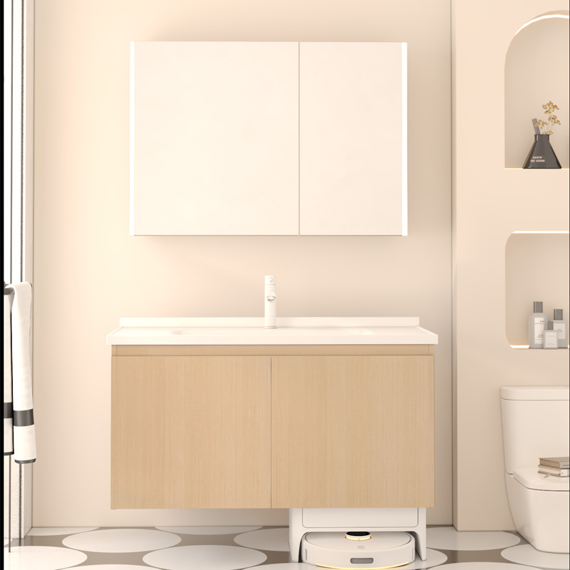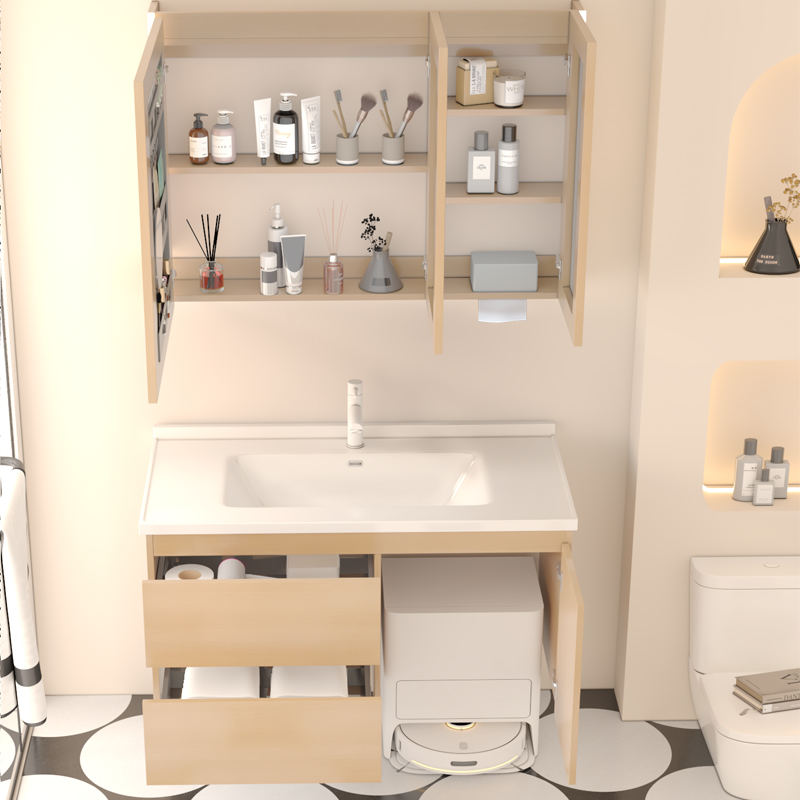扫地机器人浴室柜组合原木色陶瓷一体盆多层实木柜洗脸洗漱台盆