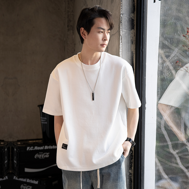 重磅短袖 潮牌休闲半袖 T恤男士 圆领宽松隐藏口袋大码 体恤 夏季 美式