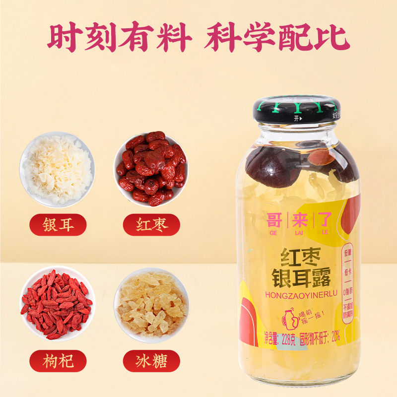 0脂鲜炖红枣枸杞银耳露即食银耳羹木瓜网红饮品饮料非冻干228g6瓶