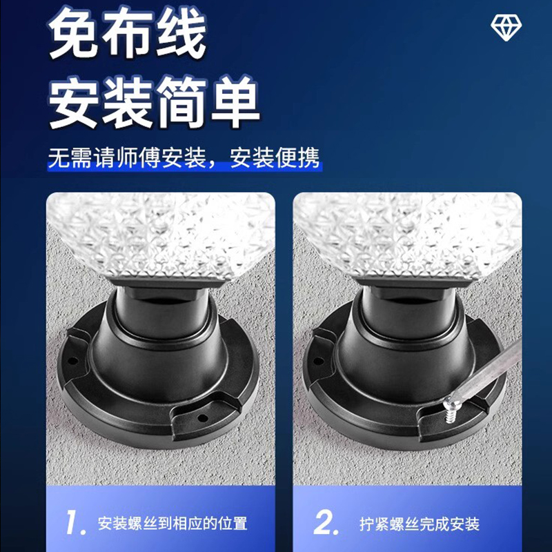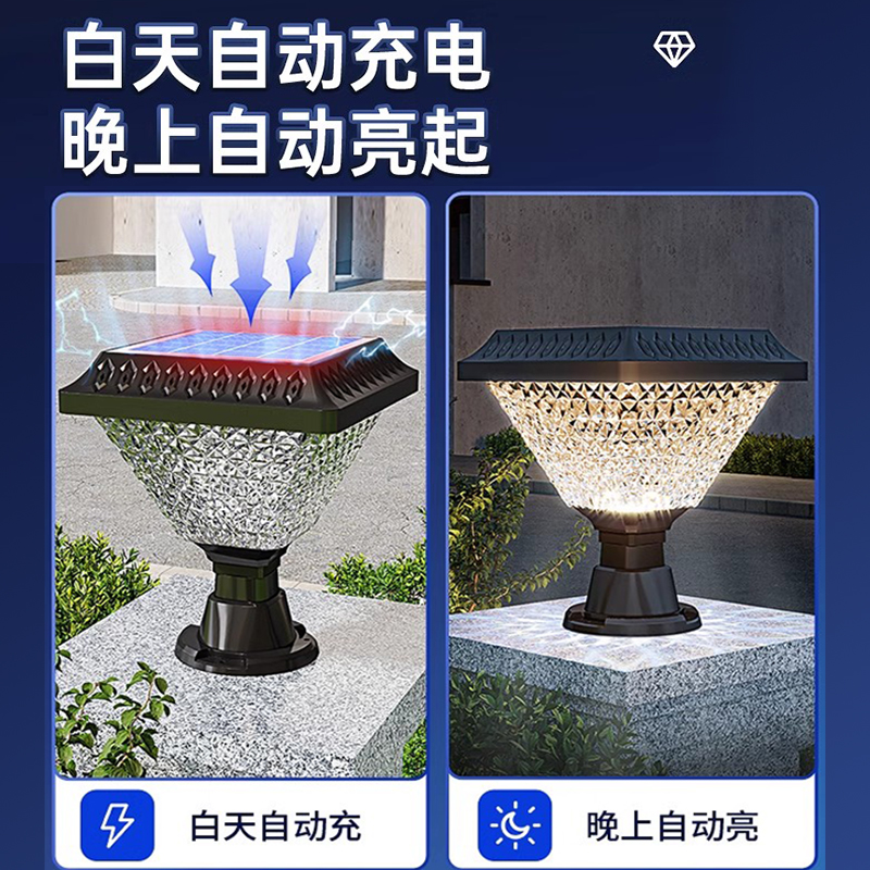 新款 太阳能柱头灯户外防水大门柱一对花园柱子灯太阳能超亮庭院灯