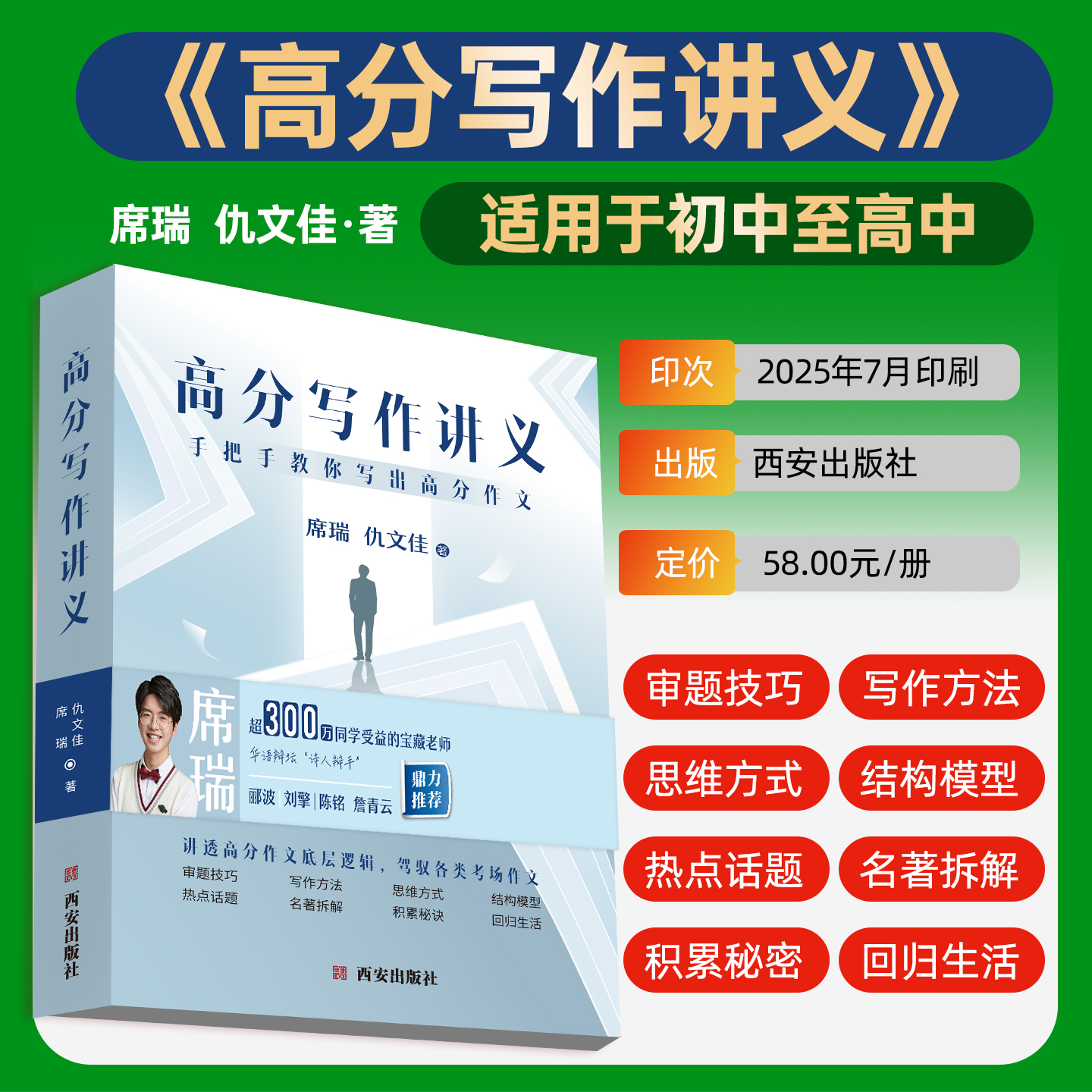 结构模型热点话题名著拆解积累秘诀回归生活八大提分维度作文写作 审题技巧写作方法思维方式 2026席瑞仇文佳 高分写作讲义