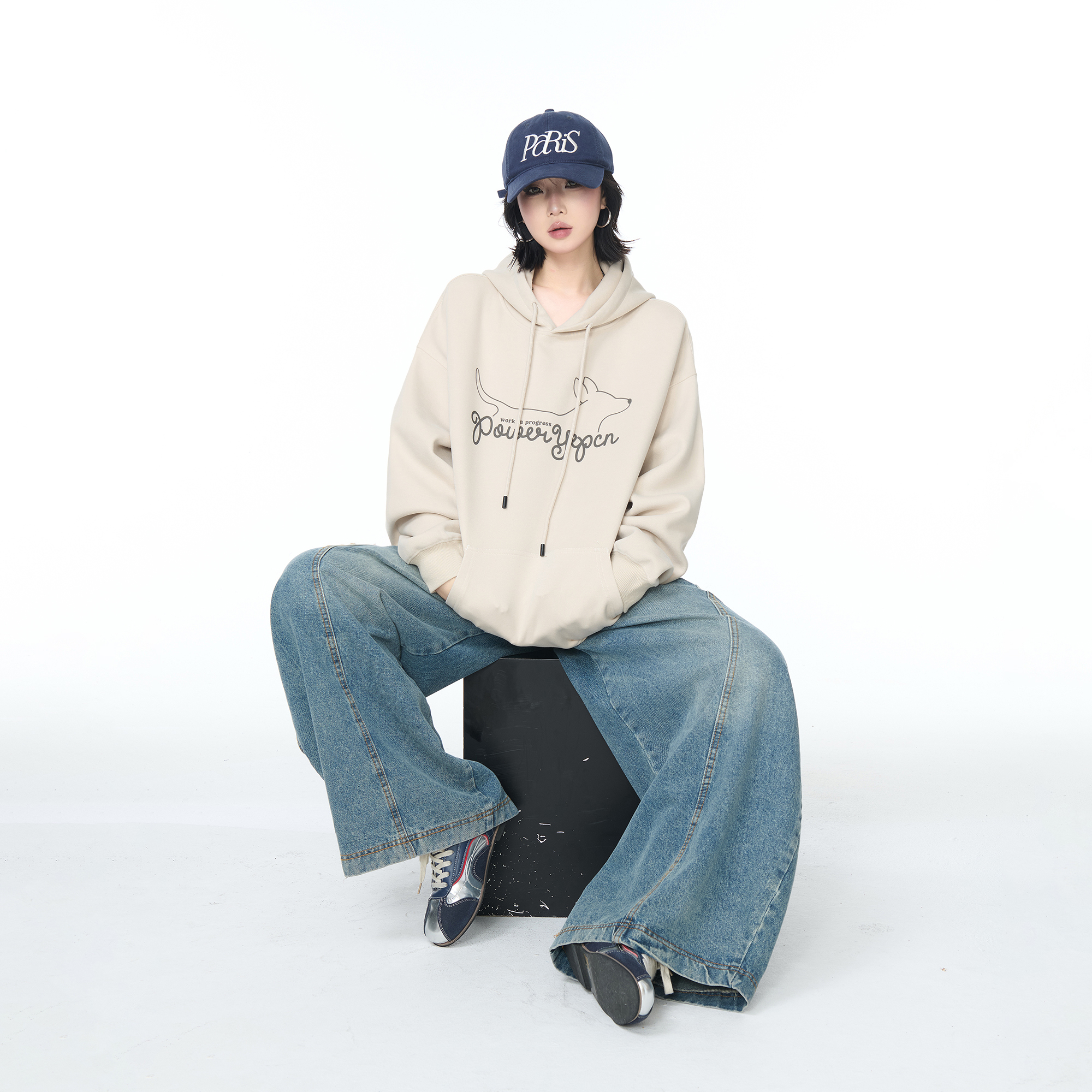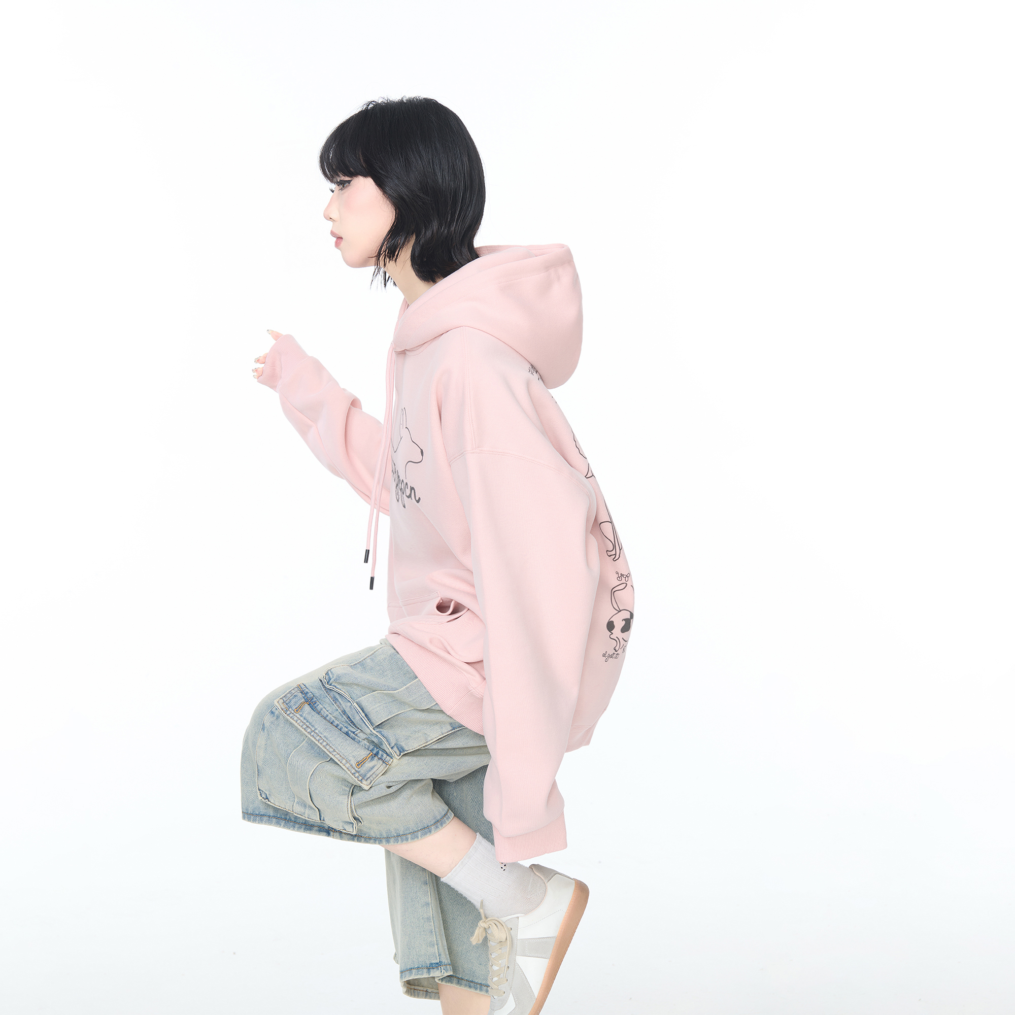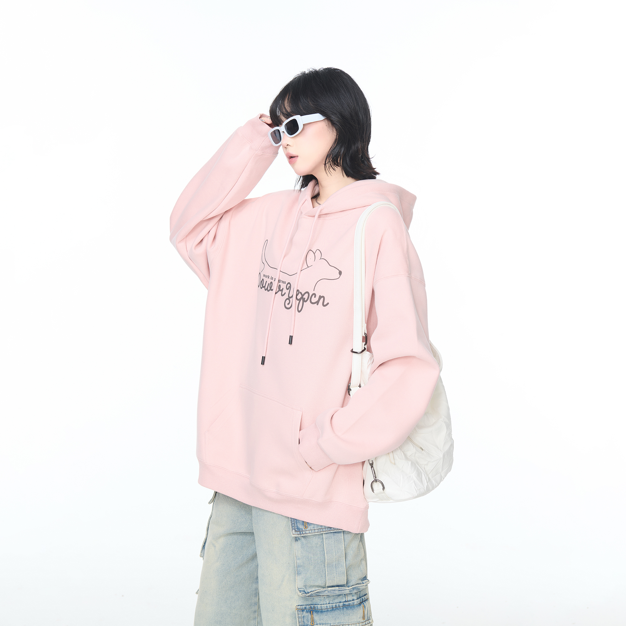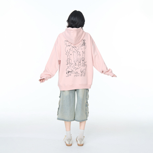 YEP粉色印花连帽卫衣外套女春秋2025新款 oversize宽松套头上衣潮