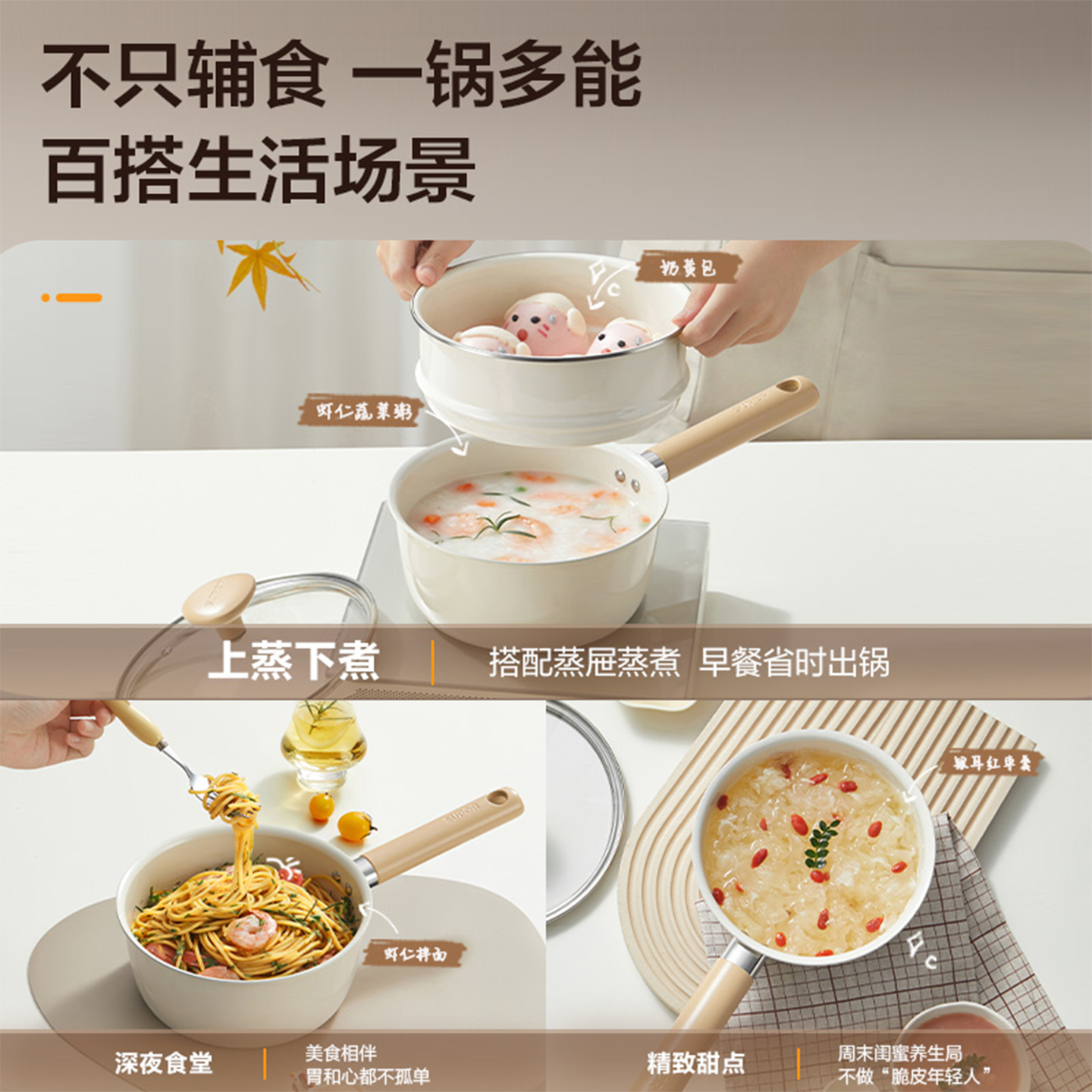 苏泊尔奶锅不粘锅宝宝辅食锅婴儿泡面陶瓷小锅煎煮蒸燃气电磁炉用