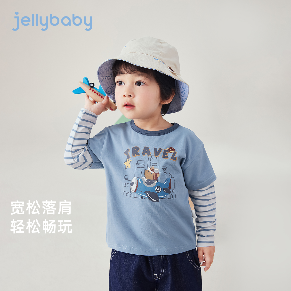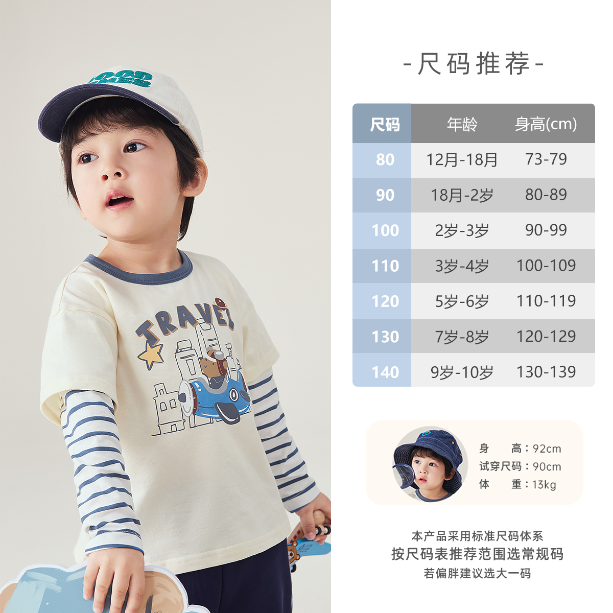 儿童秋季 男小童撞色秋装 男童t恤8宝宝条纹假两件长袖 衣服 7A抗菌