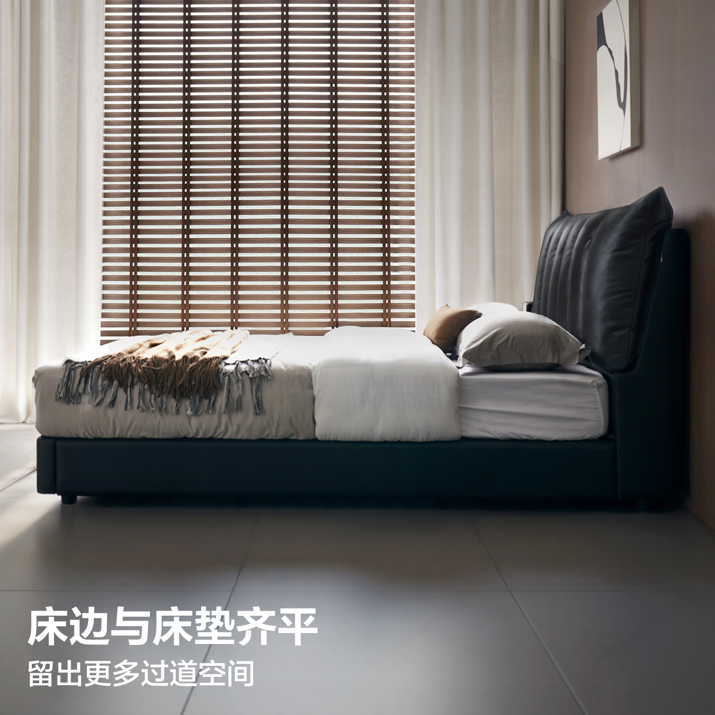 全友家居意式 轻奢巴赫真皮软床主卧室黑色高端大气琴键双人大床
