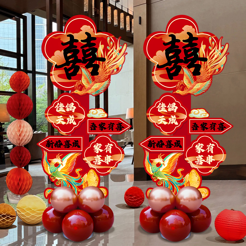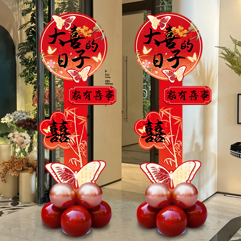 结婚立柱kt板路引气球装 农村庭院婚礼门口迎宾牌 饰婚房布置套装