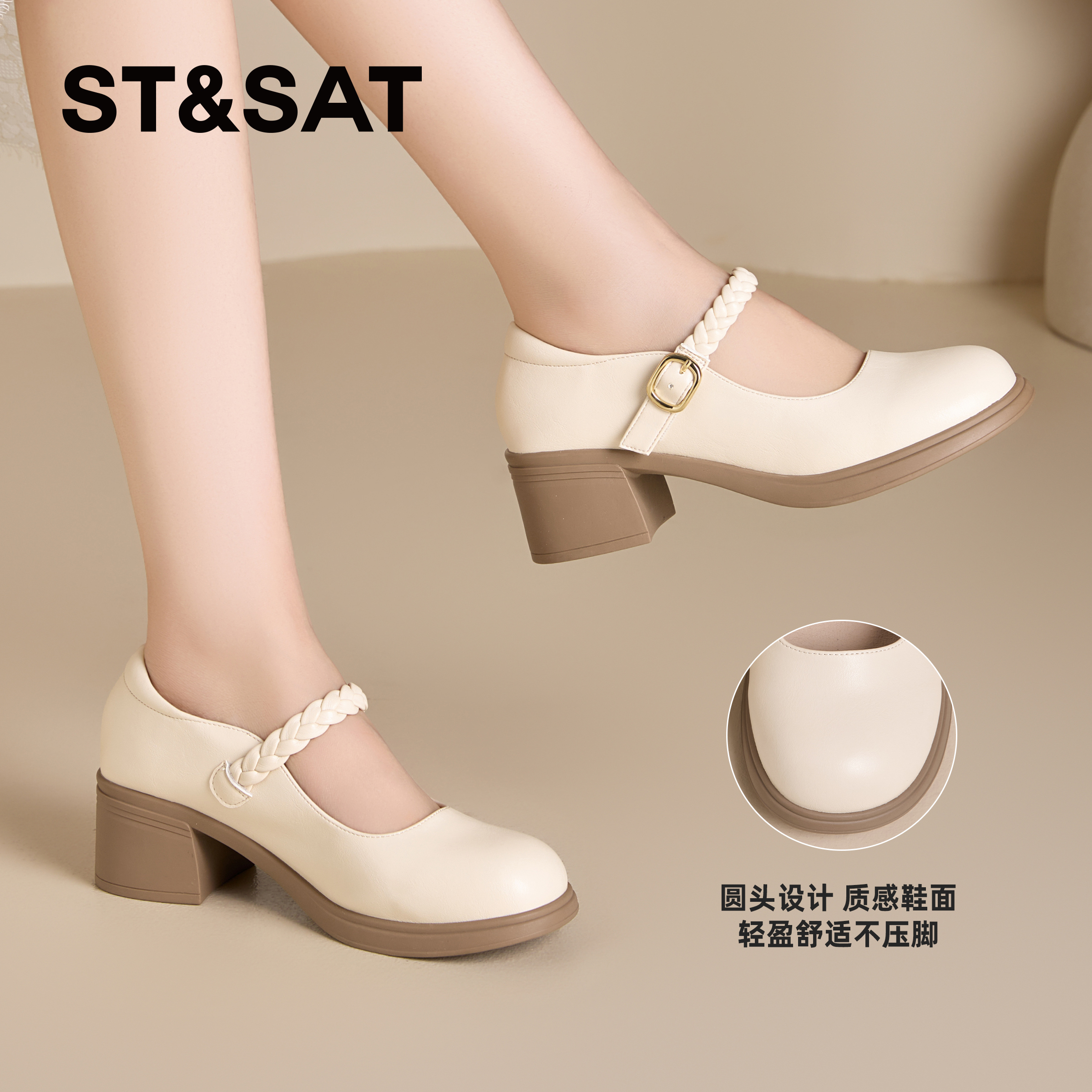 大女主 婚鞋 百思图25秋新款 尖头女浅口单鞋 裸色高跟鞋 双11预售