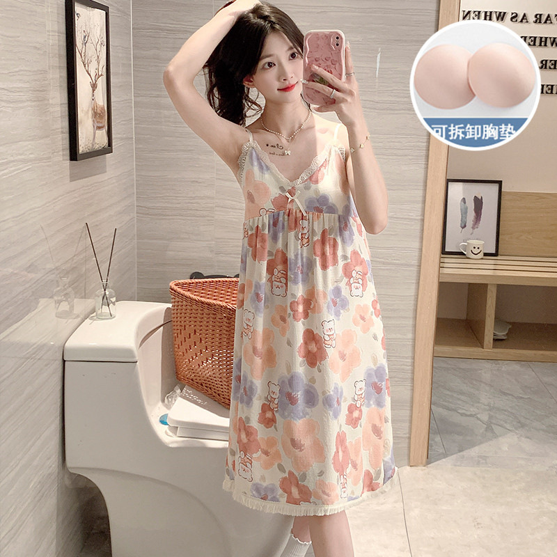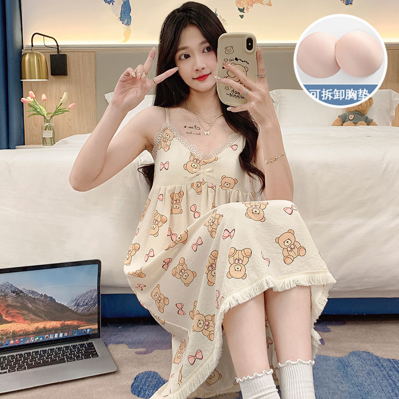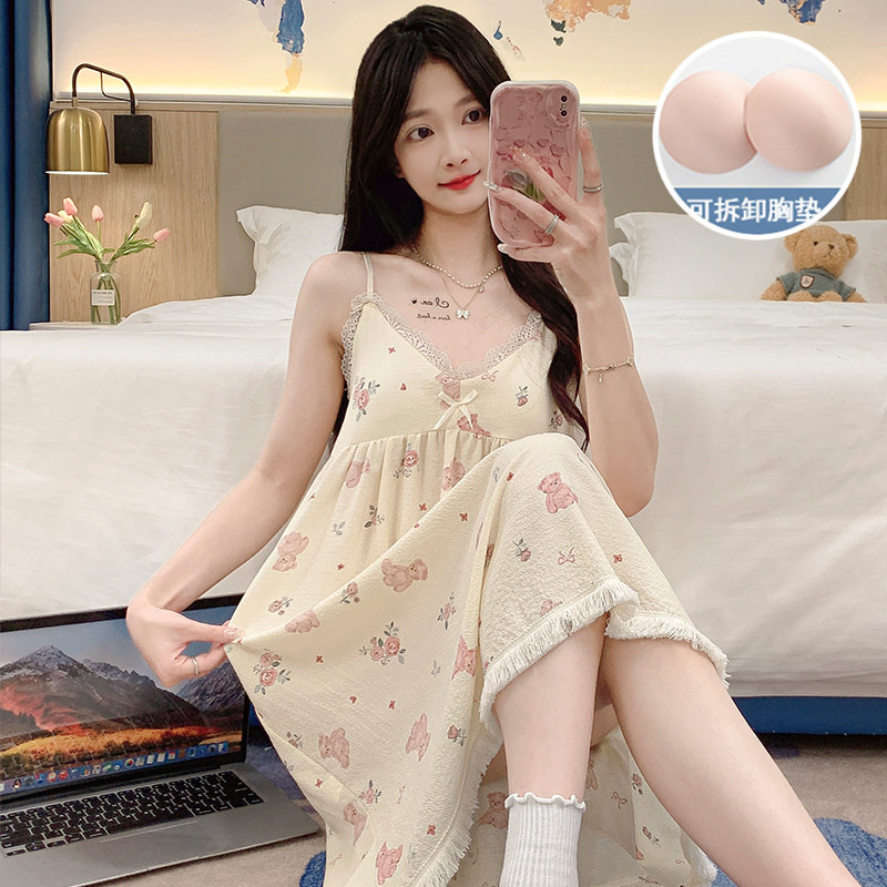 男春秋 带胸垫家居服套装 A类抗菌防螨纯棉情侣睡衣女长袖 红豆夏季